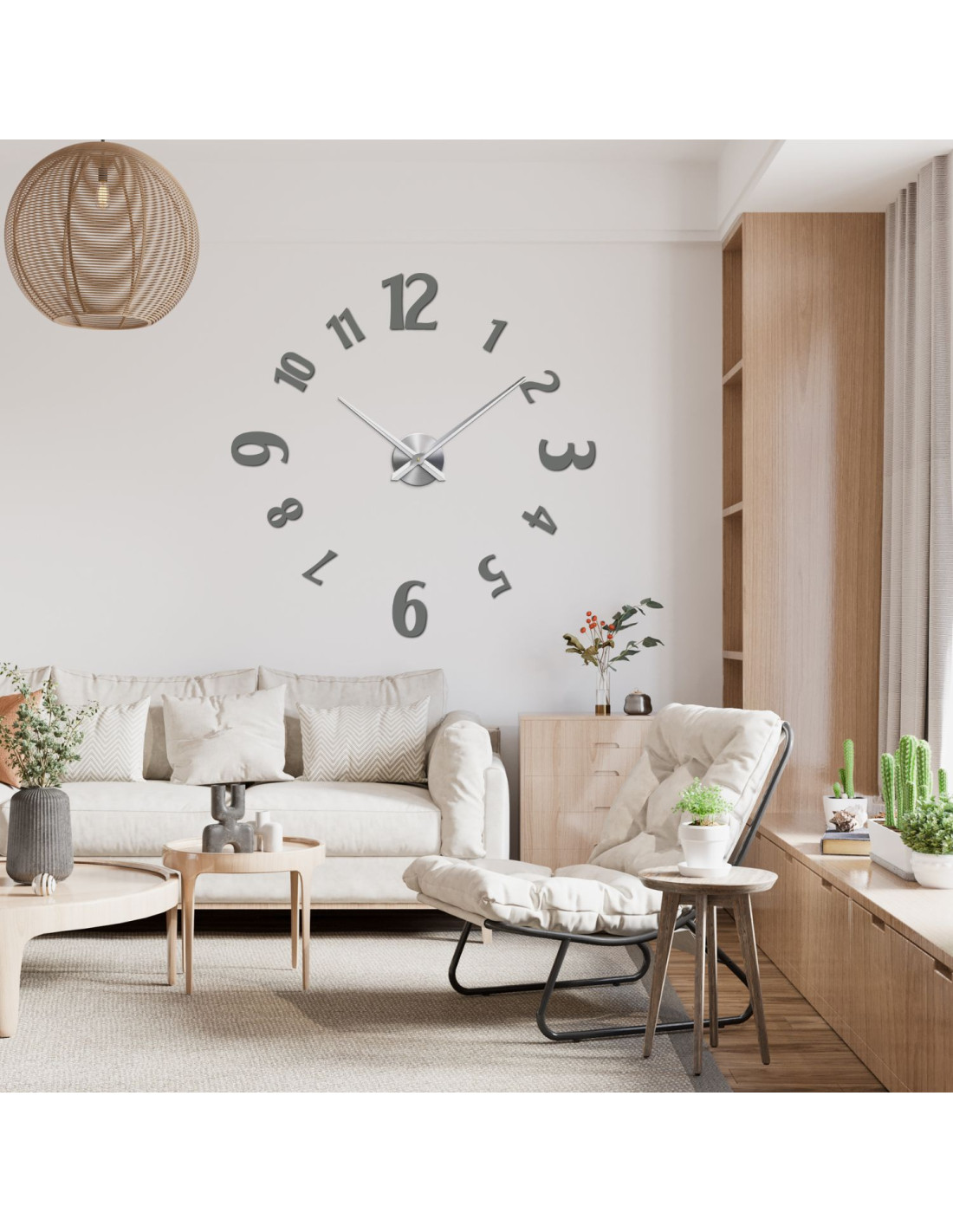A nagyméretű, öntapadós órák vastag számokkal és fém középrésszel ideális megoldást jelentenek bármilyen modern belső térbe.