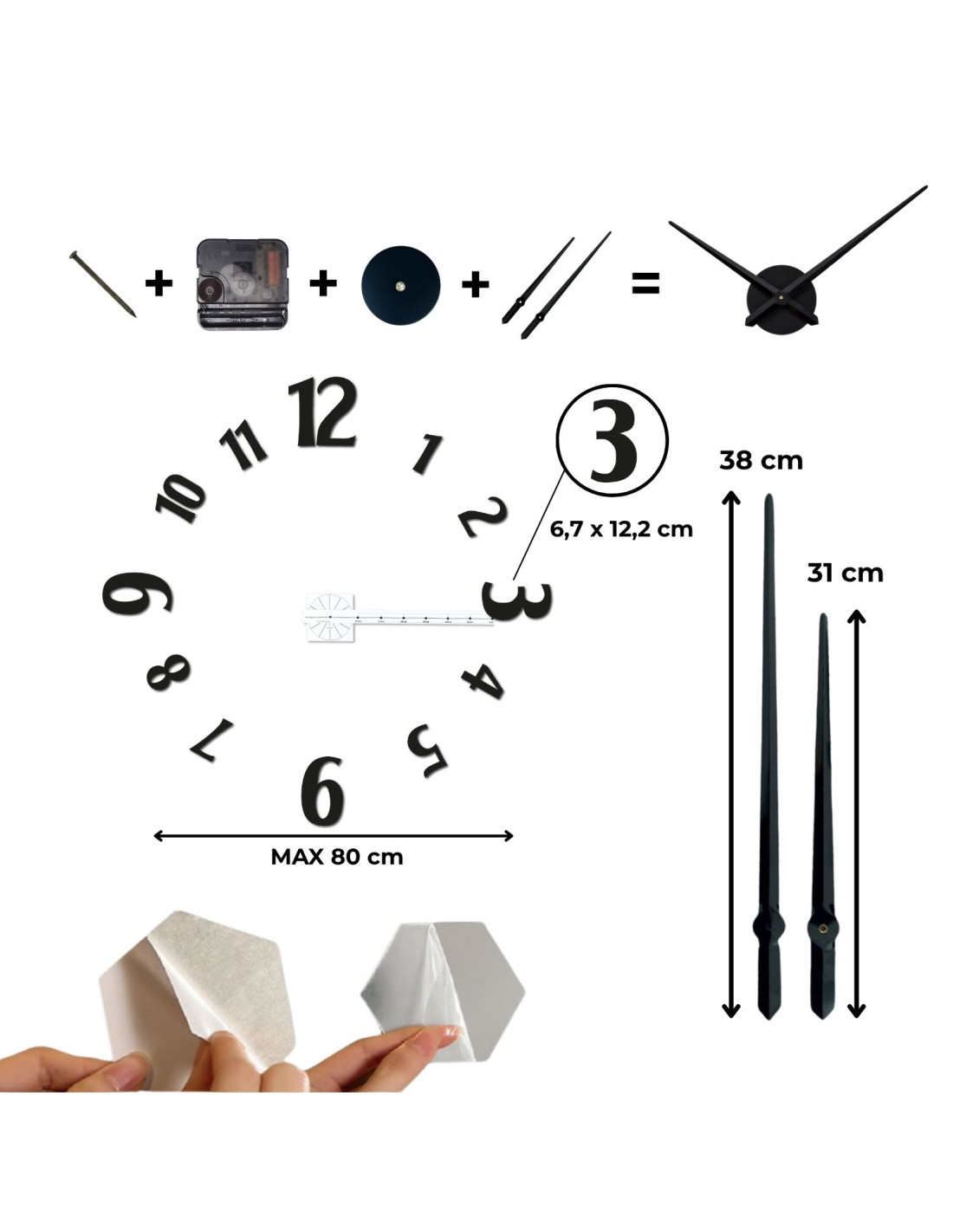 Nagyméretű, 3D-s, öntapadós falióra - modern dizájn bármilyen enteriőrbe.