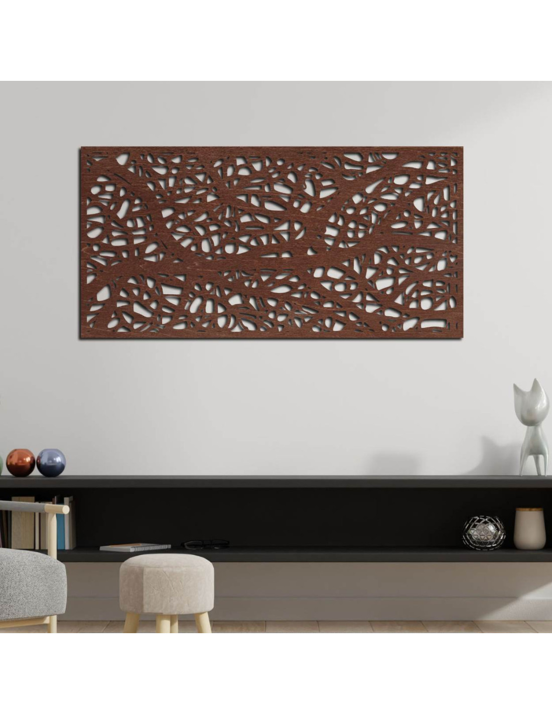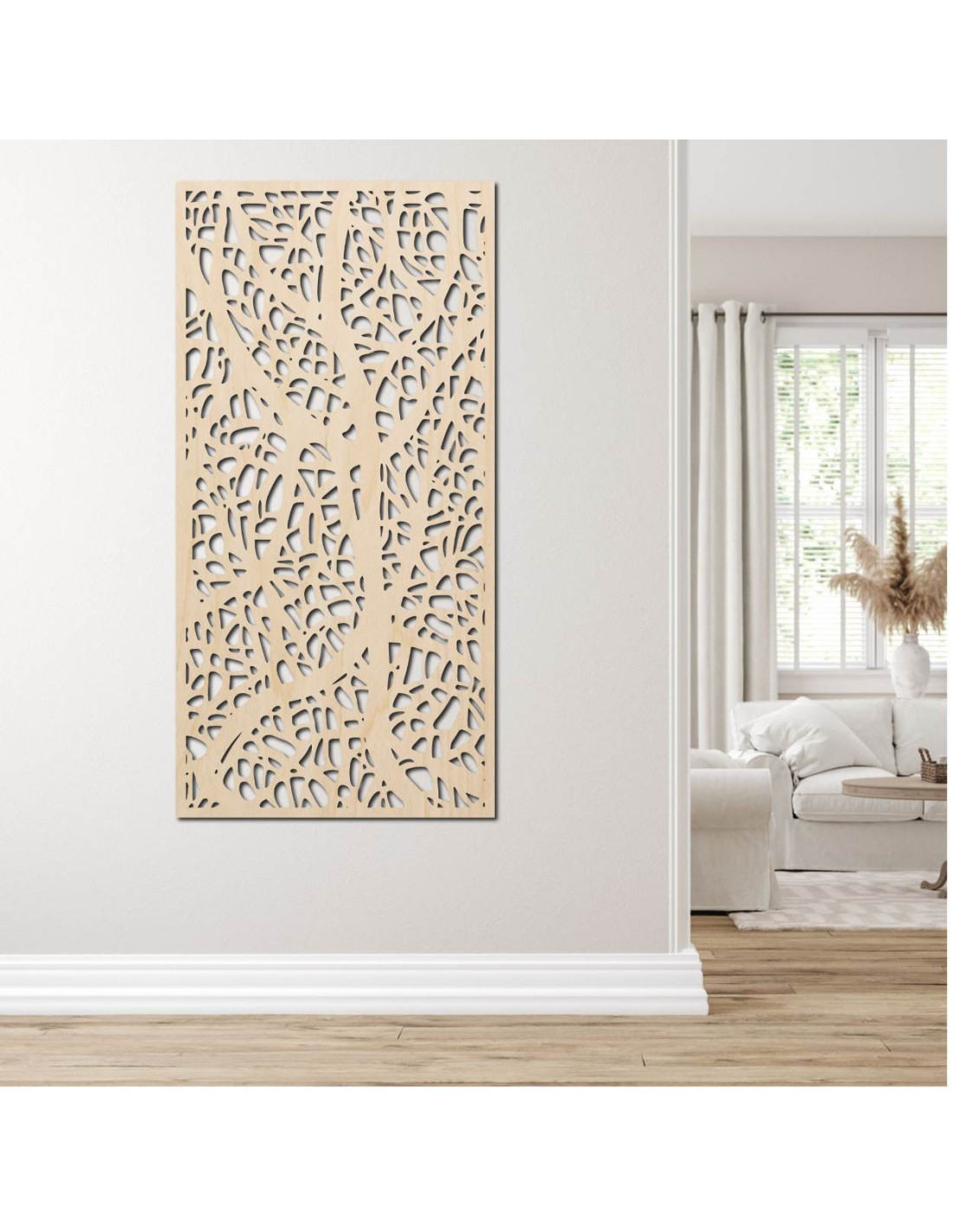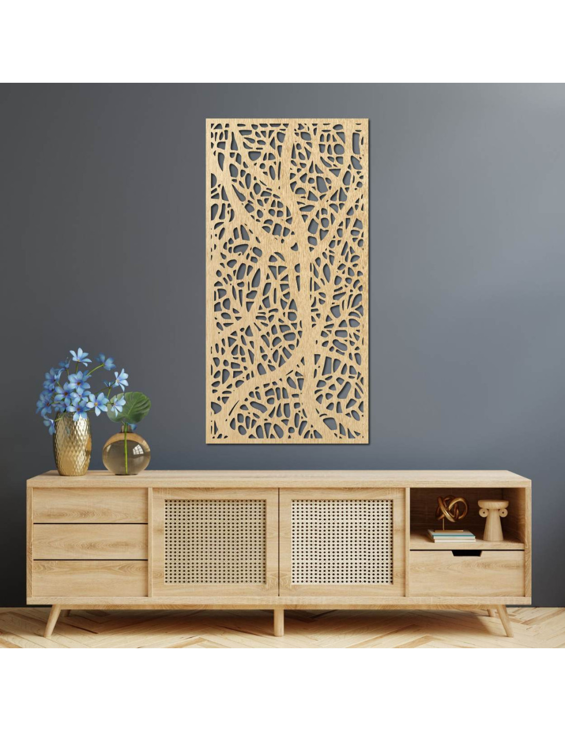 A modern , részletes fakivágással ellátott fa faldekoráció ideális a falak feldobására, és a természet melegét, valamint az eredeti dizájnt hozza otthonába.