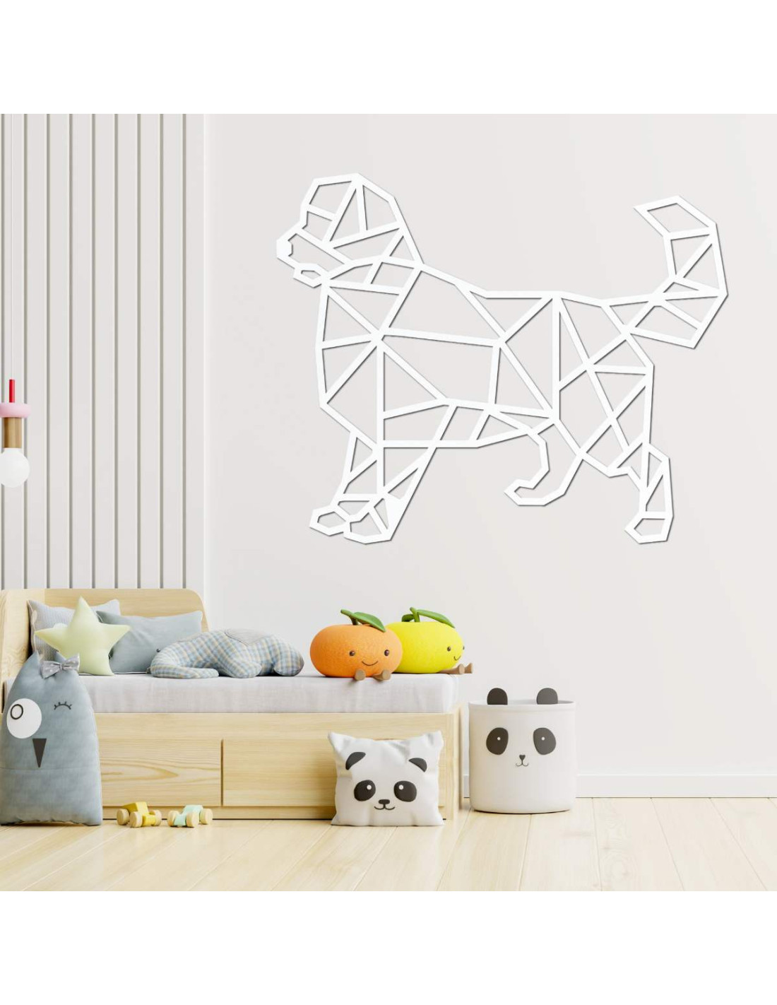 Geometrikus stílusú fából készült kutyafestmény – eredeti, karakteres dekoráció