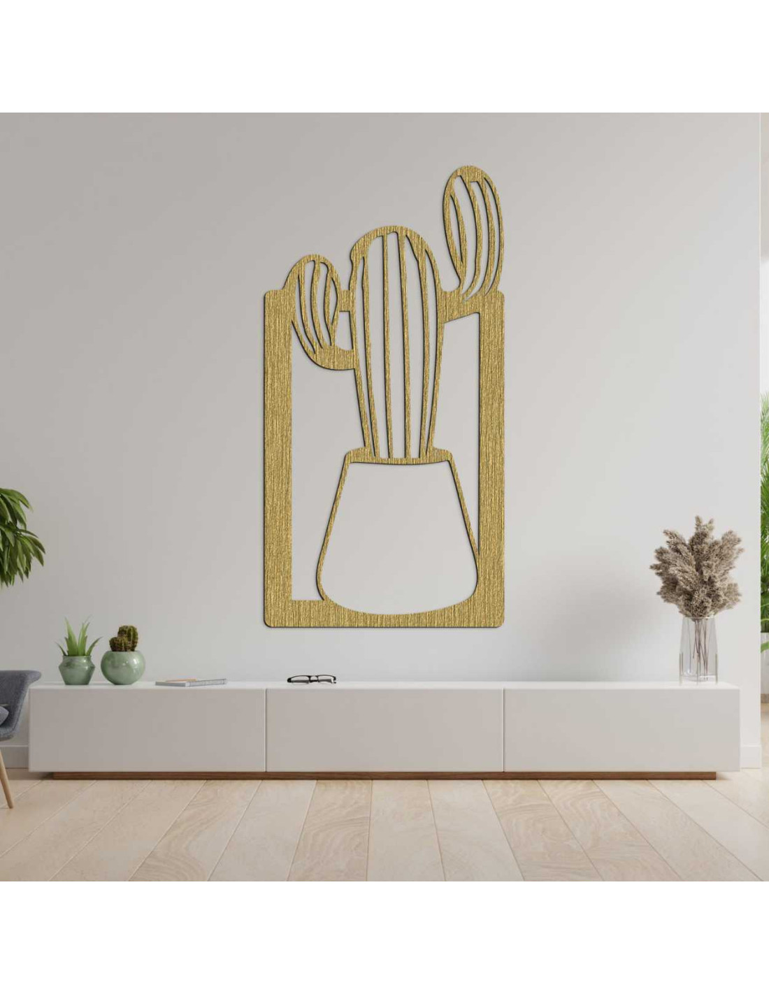 A minimalista kaktuszmotívum precízen faragott, kiemelve a termék minőségi kidolgozását és értékét.