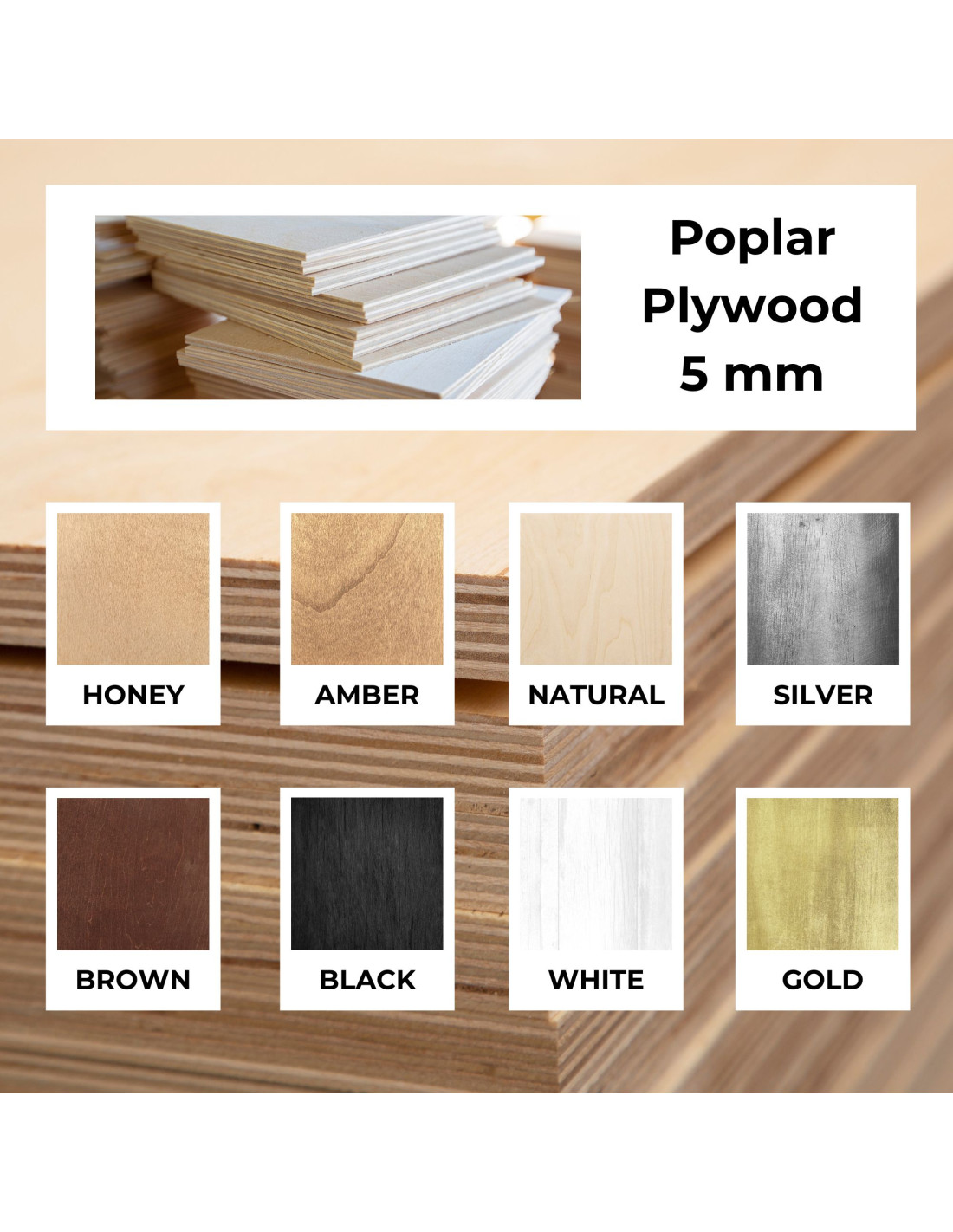 A rétegelt lemez vastagsága 5 mm / HDF vastagsága 3 mm.