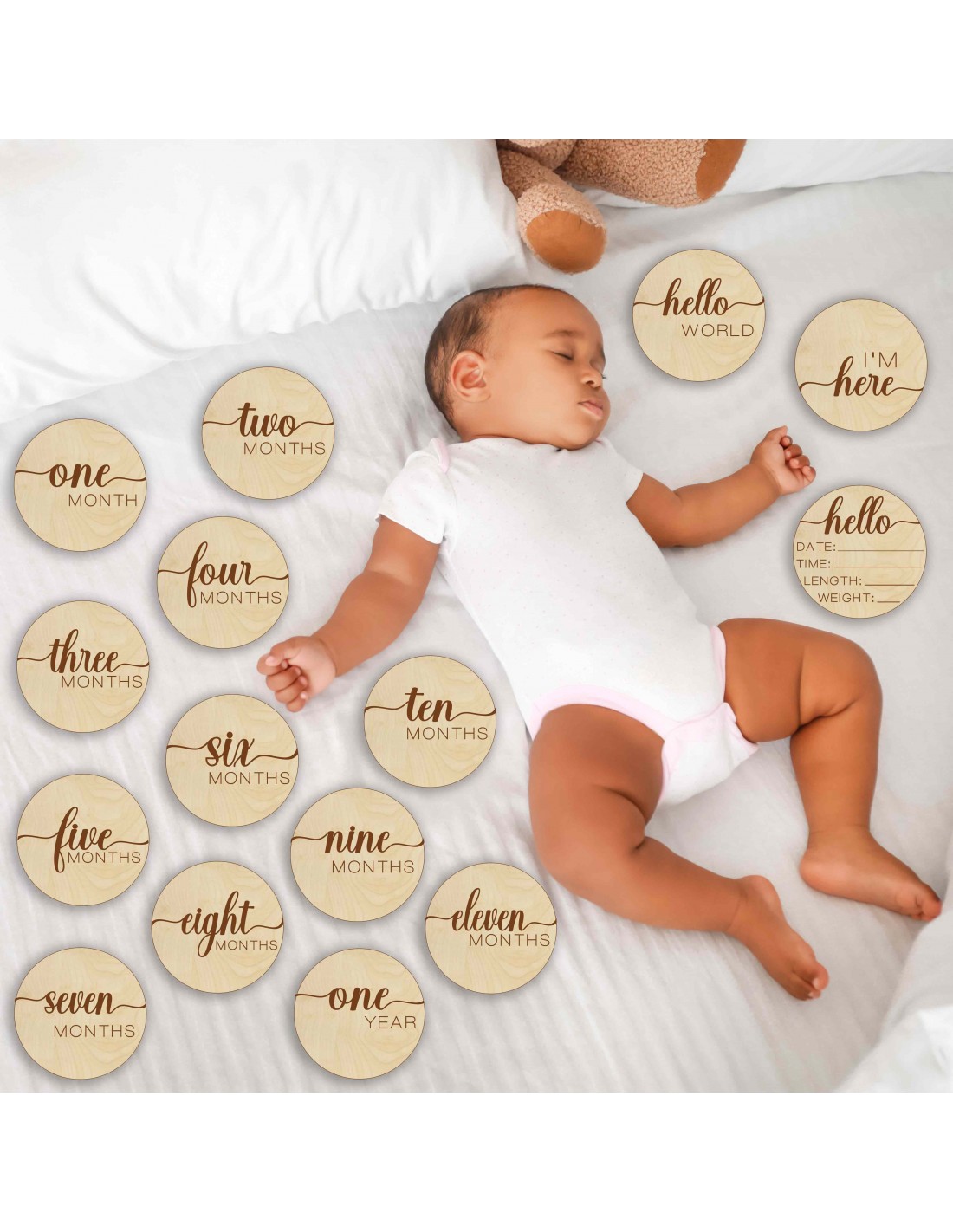SentopBabád mérföldköveinek dokumentálása még soha nem volt ilyen egyszerű (vagy imádnivaló)! Fából készült mérföldkőkészletünk egyszerű és gyönyörű módja annak, hogy minden értékes pillanatot megörökíts.