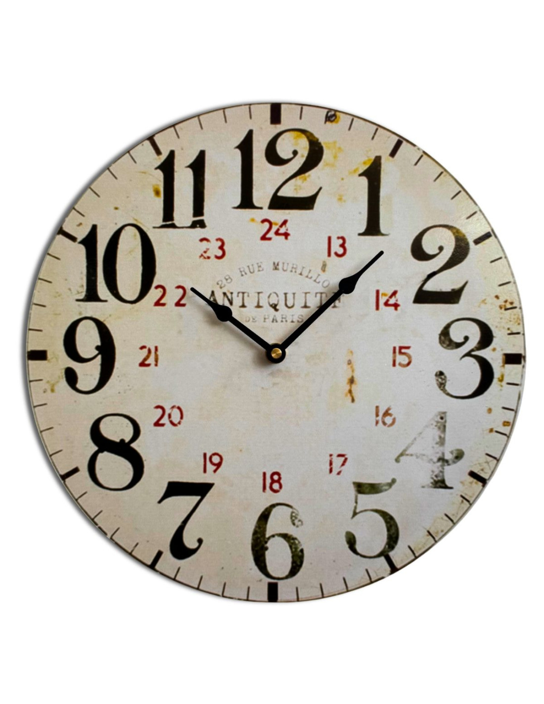 - Fából készült mutatók: óra mutató: 11 cm, perc mutató: 14 cm