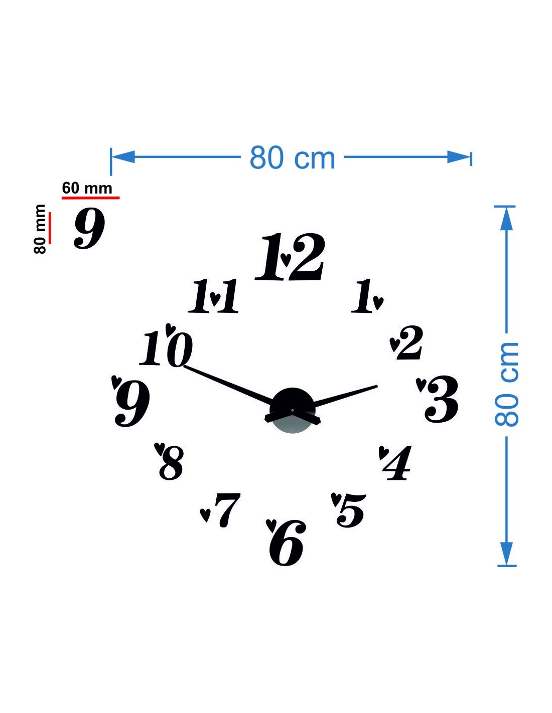A matrica minimális méretei: 800 x 800 mm, 1300 x 1300 mm-ig nagyítható. Óraszerkezet méretei: 100 x 100 mm. Mutató hossza: 30 - 40 cm.