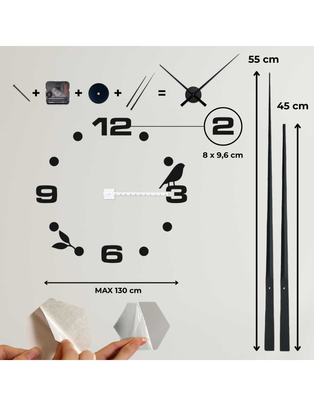 Ez a modern óra az elegáns minimalista dizájnt, a hárommutatós szerkezetet csendes és sima működéssel , valamint fúrás nélküli egyszerű összeszereléssel ötvözi.