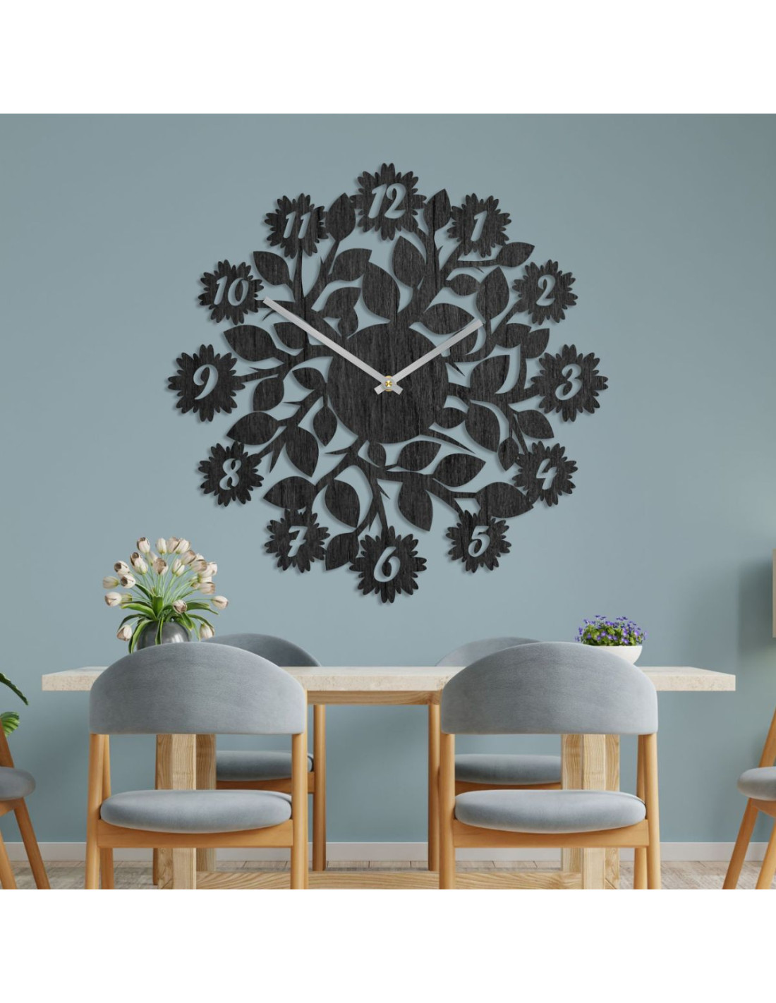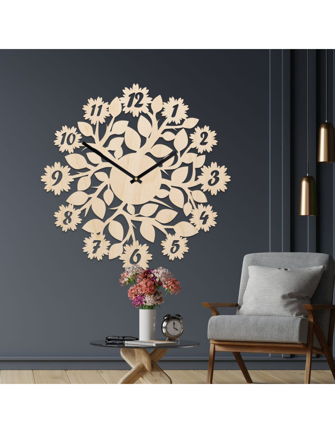 Elegáns, csendes működésű, fából készült óra finom virágmotívummal. Természetes kialakítása modern és rusztikus enteriőrökbe egyaránt illik.
