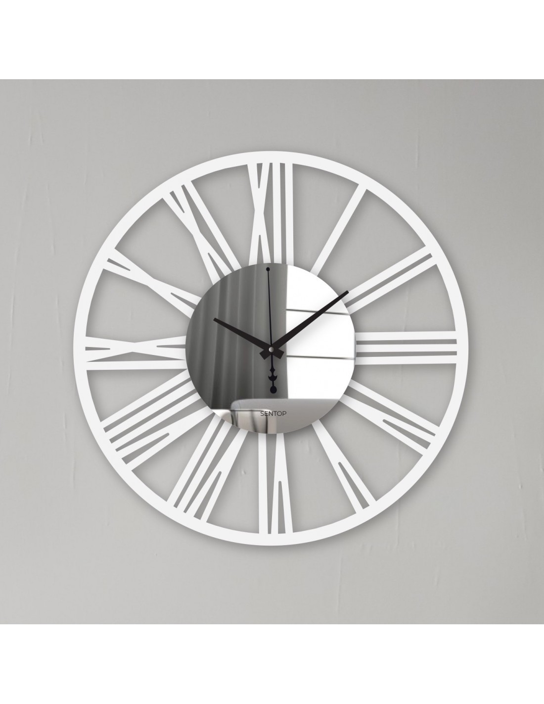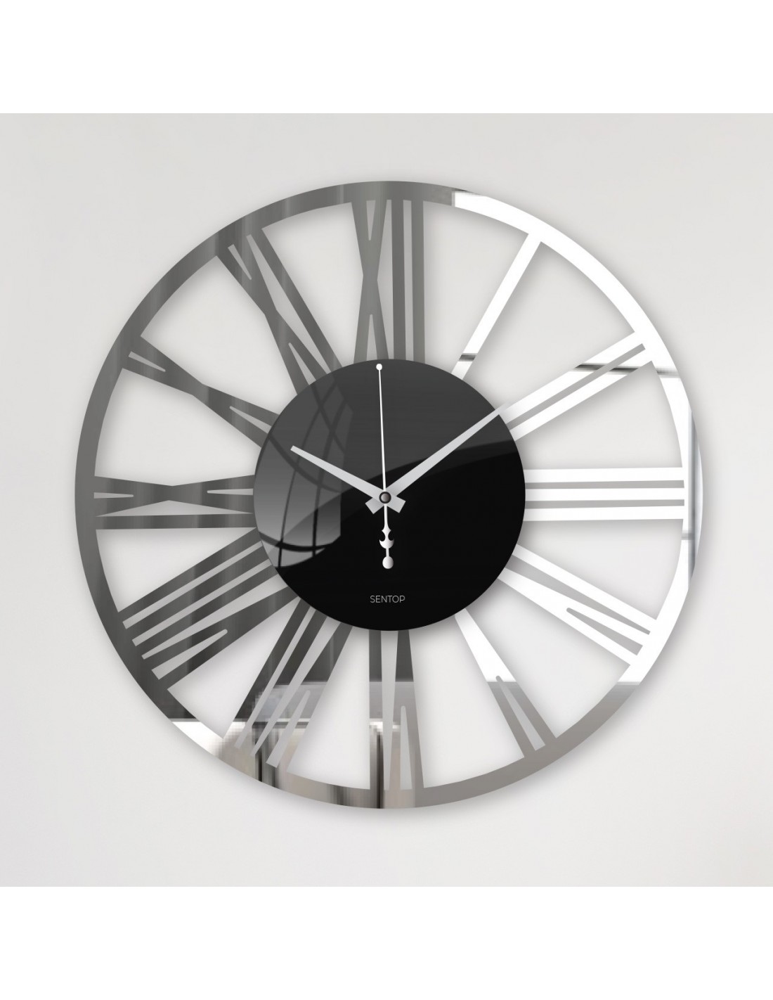 • Modern dizájn - kontrasztos fekete római számok és tükrös középpont a luxushatásért.