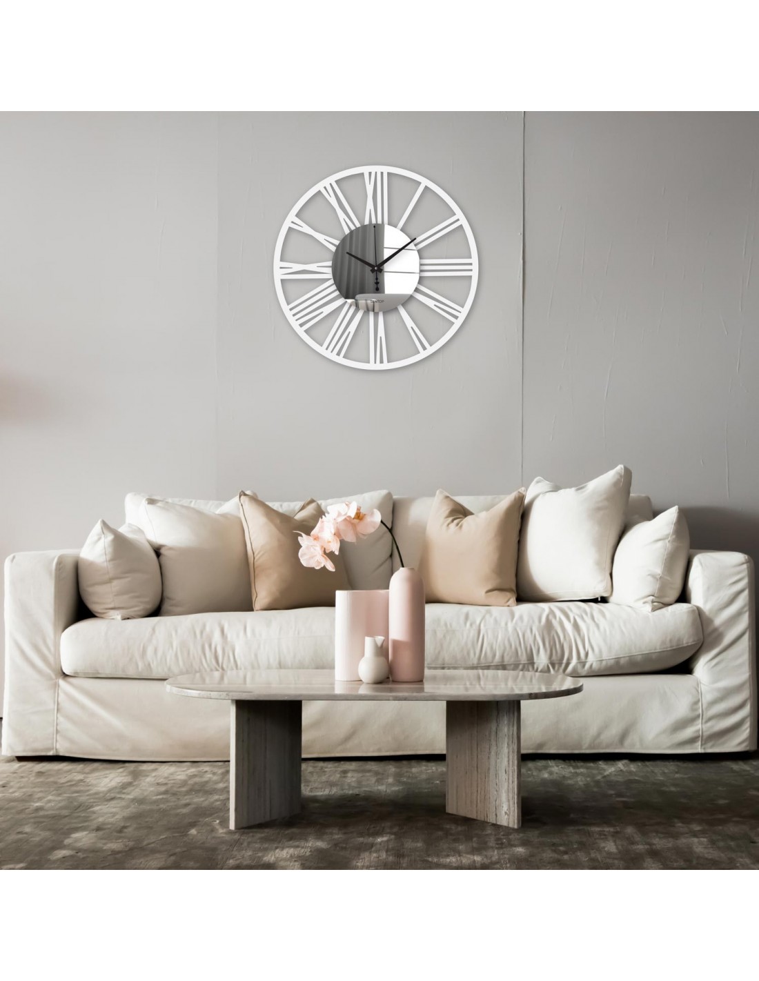 A csendes szerkezet, az elegáns mutatók és a minimalista számlap kiemelik az óra modern jellegét, amely ideális kiegészítője lehet a nappalinak, a hálószobának vagy az irodának.