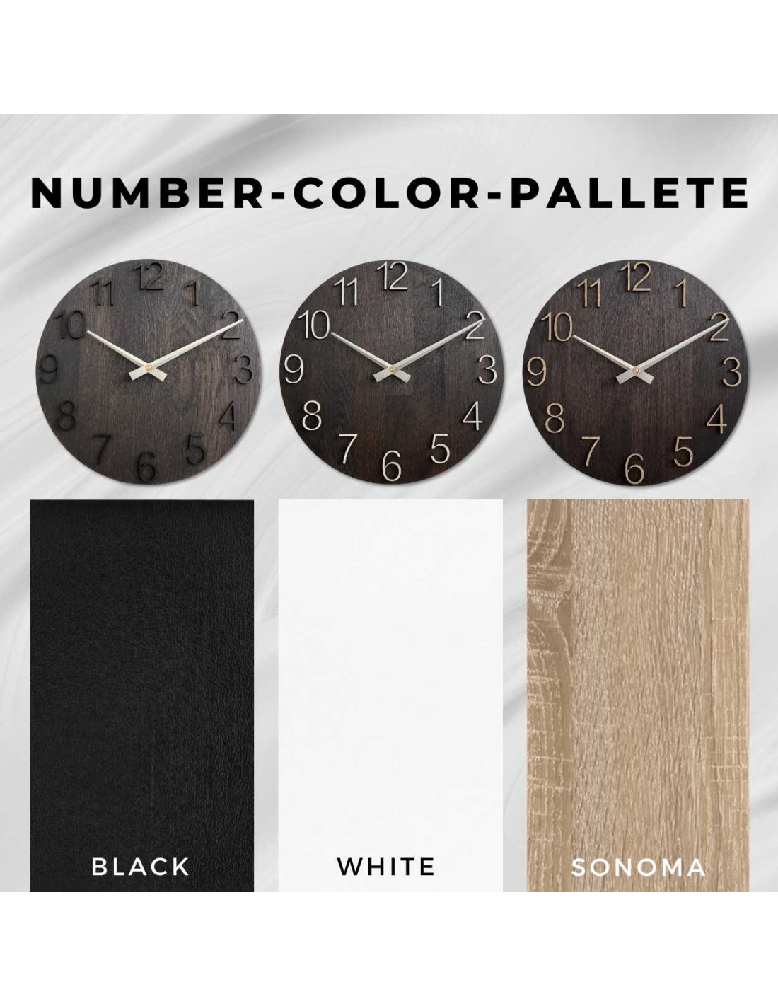 A faragott számok és a finom minimalista dizájn kiemelik a fa természetes szépségét.