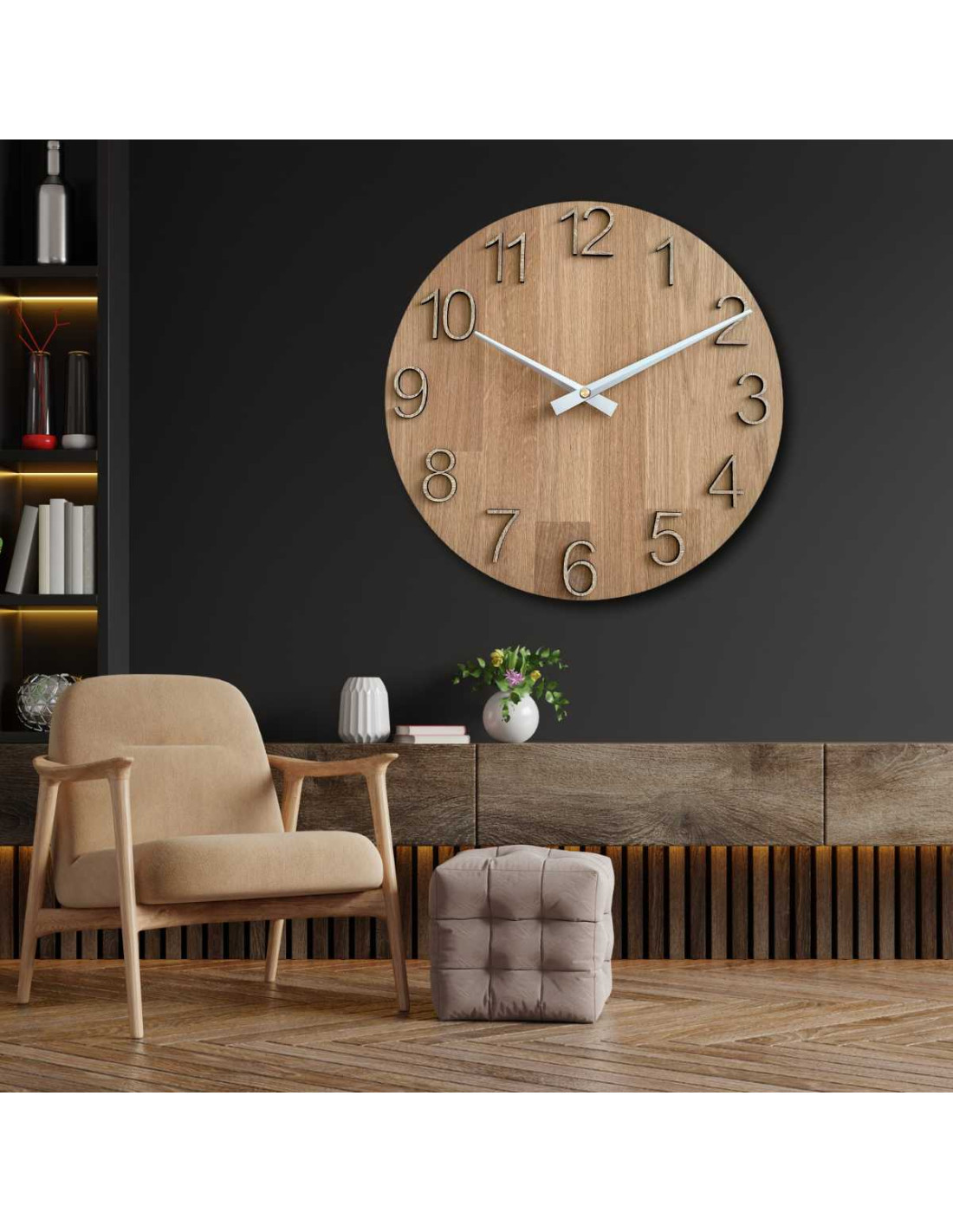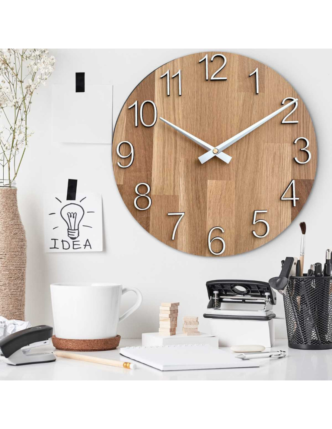 - Természetes és elegáns dizájn - A tölgyfa és a fém mutatók kombinációja modern, mégis időtlen megjelenést kölcsönöz.