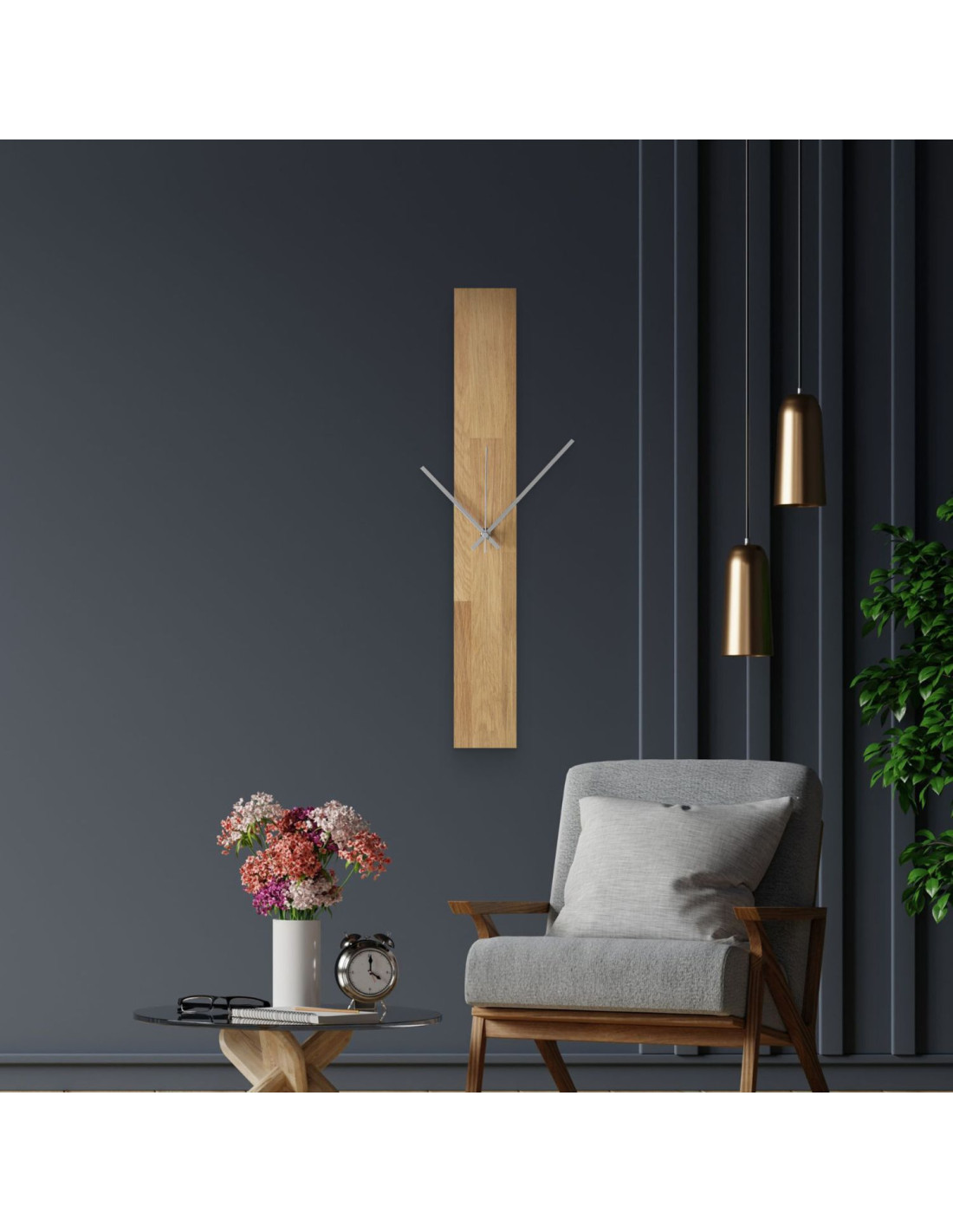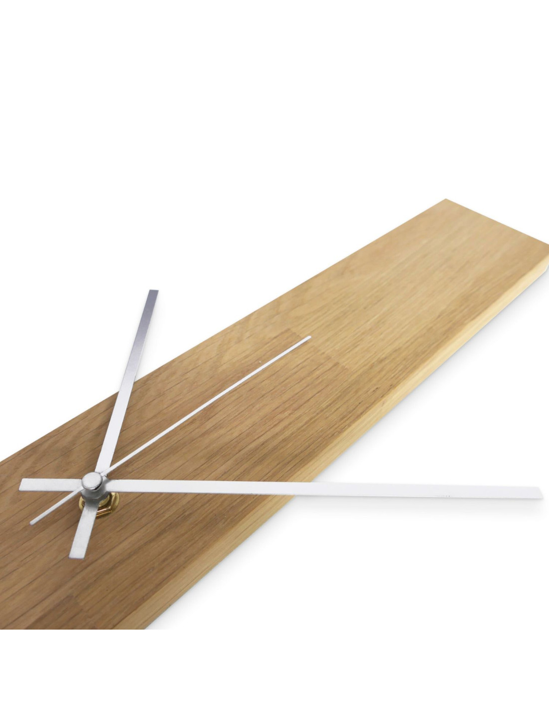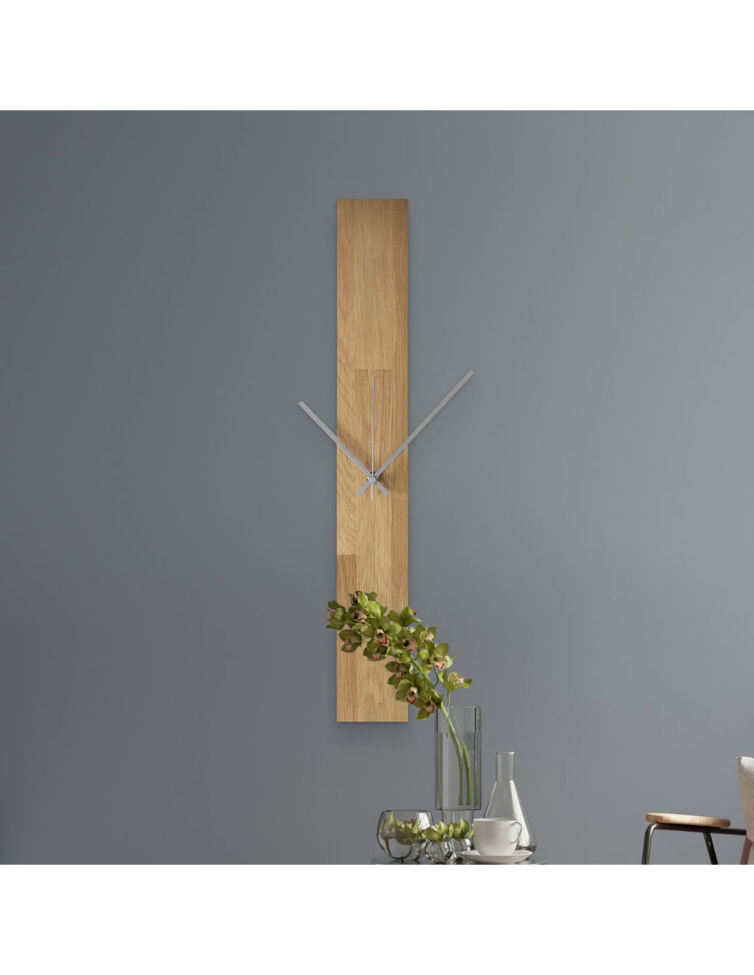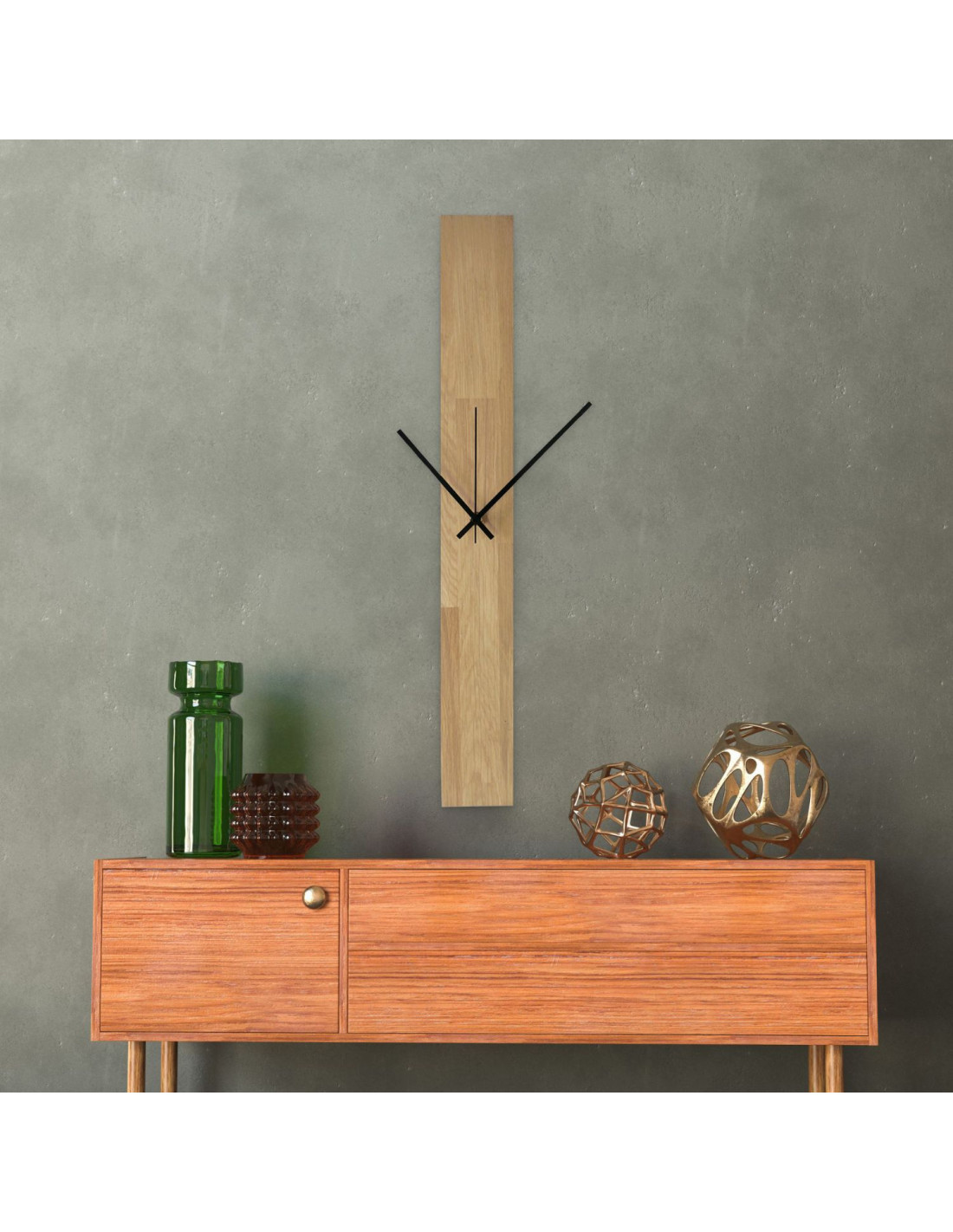 A számok nélküli minimalista dizájn kiemeli a fa természetes szépségét és a kidolgozás finom részleteit.