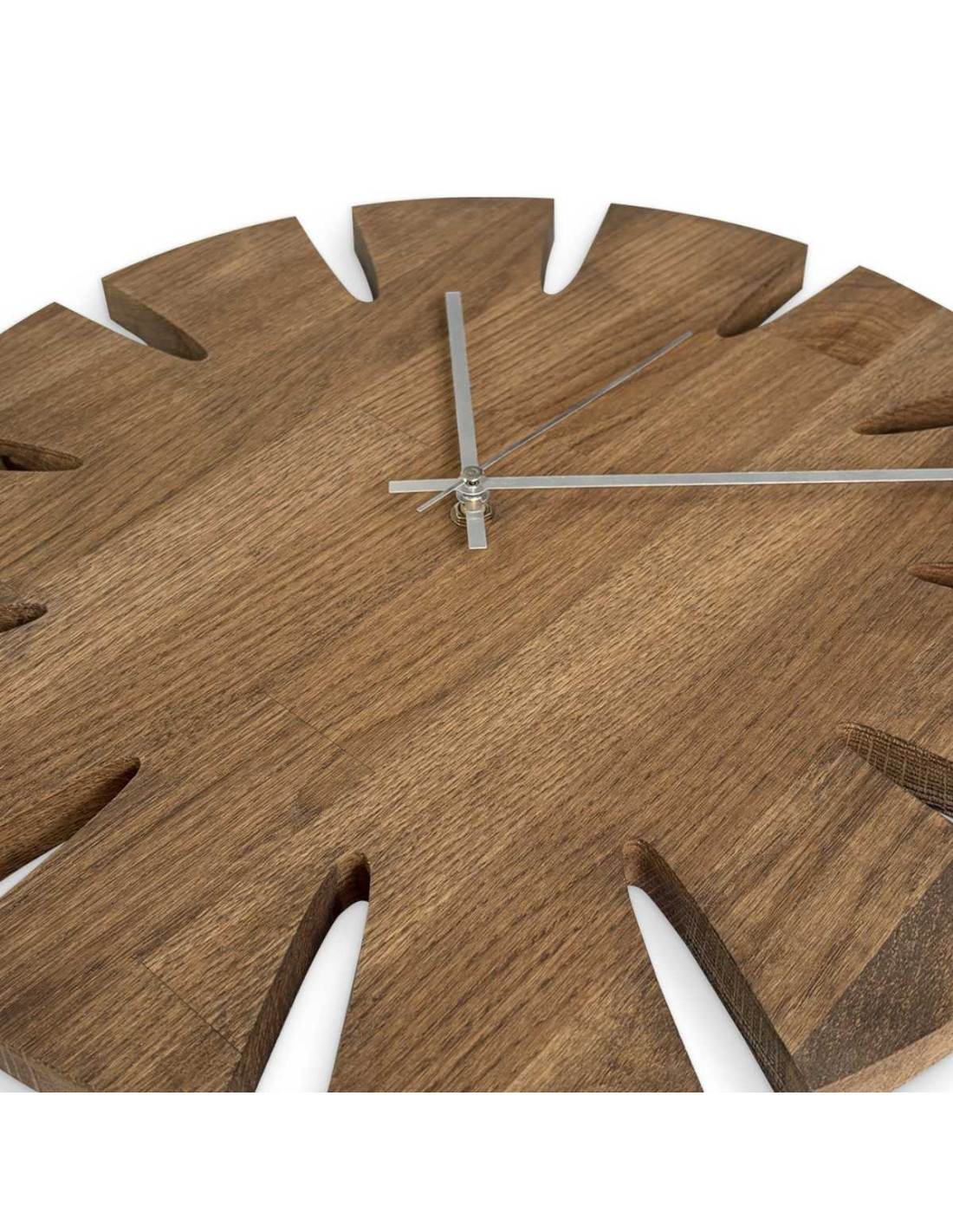 Minden óra tömör tölgyfa panelekből készül, amelyeket először CNC technológiával precízen a kívánt formára és méretre vágnak.