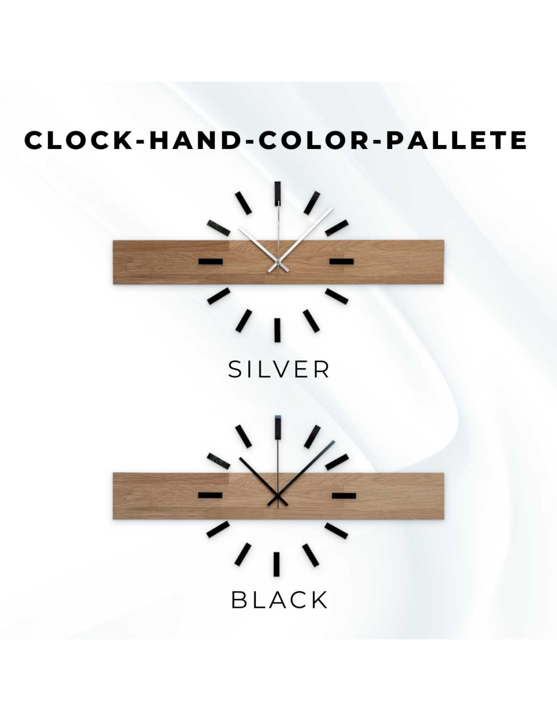 • Óramutatók: fém, ezüst/fekete – percmutató: 11,5 cm (4,53 hüvelyk), óramutató: 15,0 cm (5,91 hüvelyk), másodpercmutató: 10,09 cm (3,97 hüvelyk)