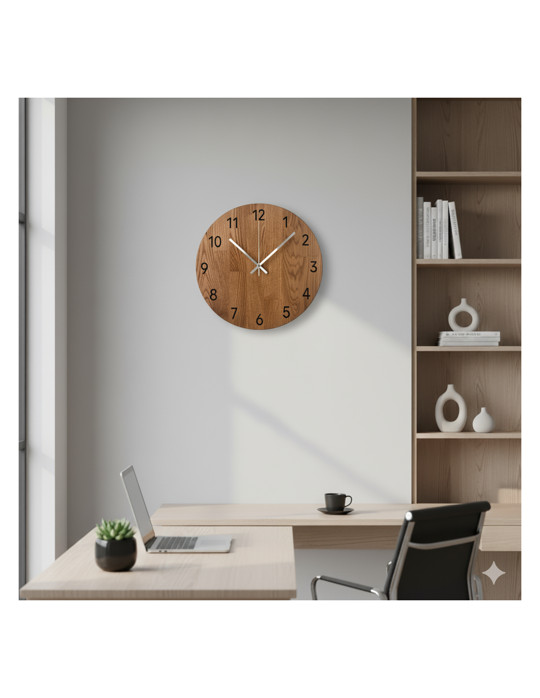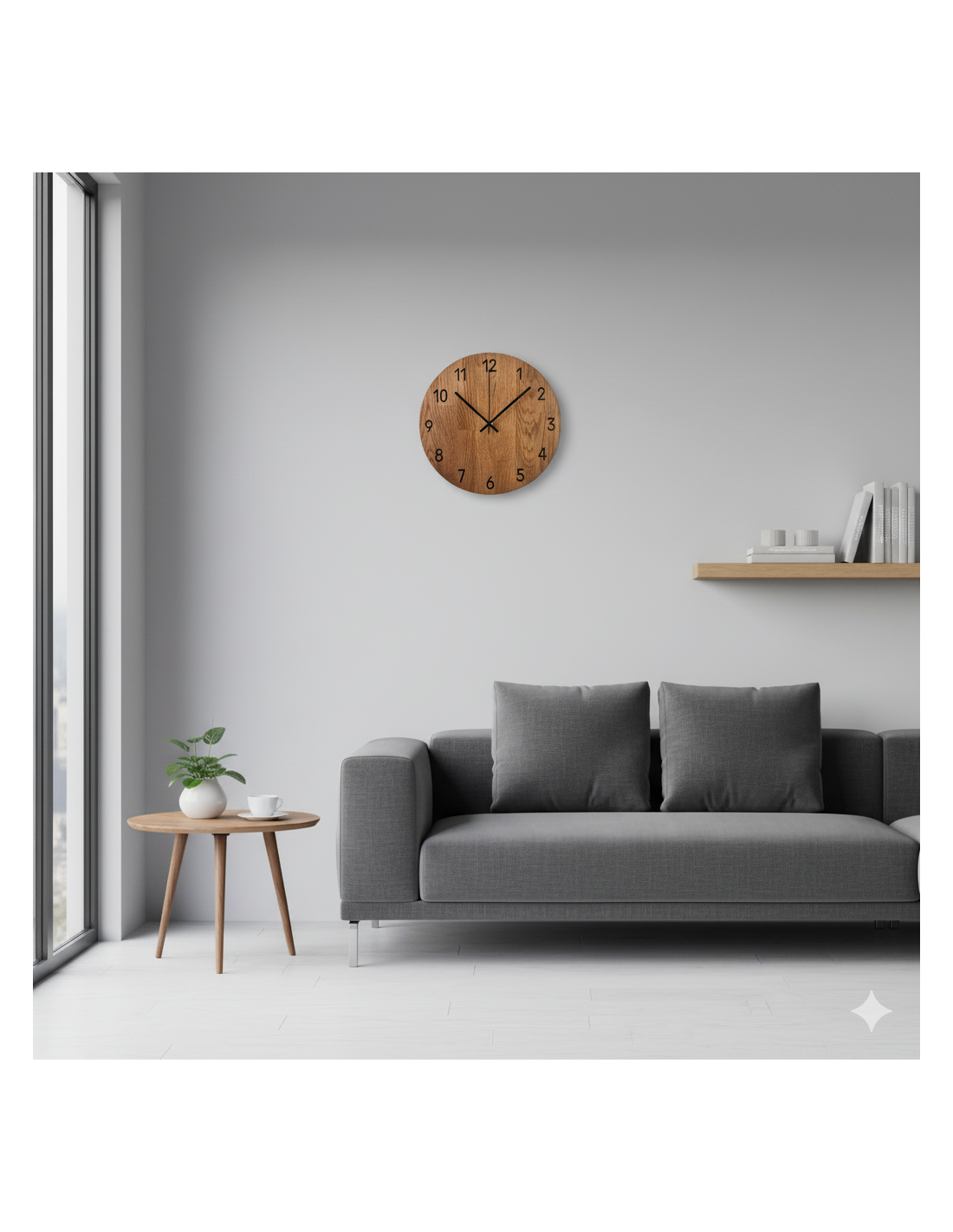 • Elegáns dizájn: A tölgyfa és a fém mutatók kombinációja modern, mégis időtlen megjelenést kölcsönöz.
