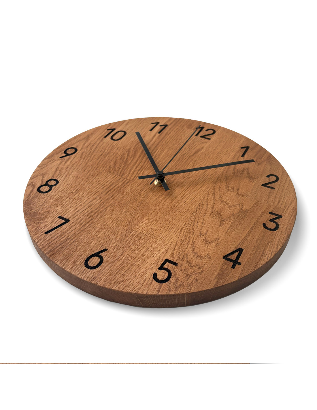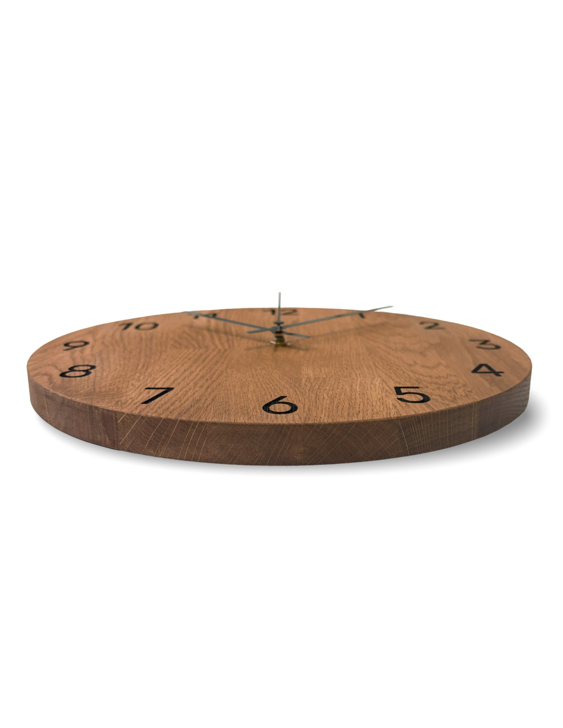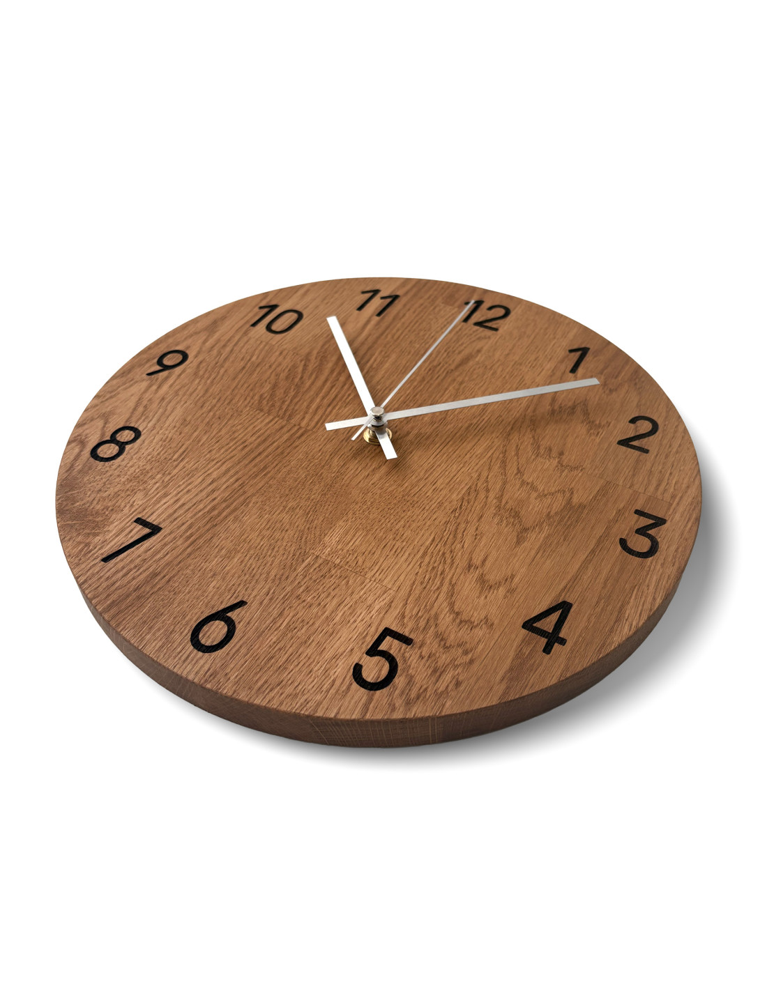 Minden óra tömör tölgyfa panelekből készül, amelyeket először CNC technológiával precízen a kívánt formára és méretre vágnak.