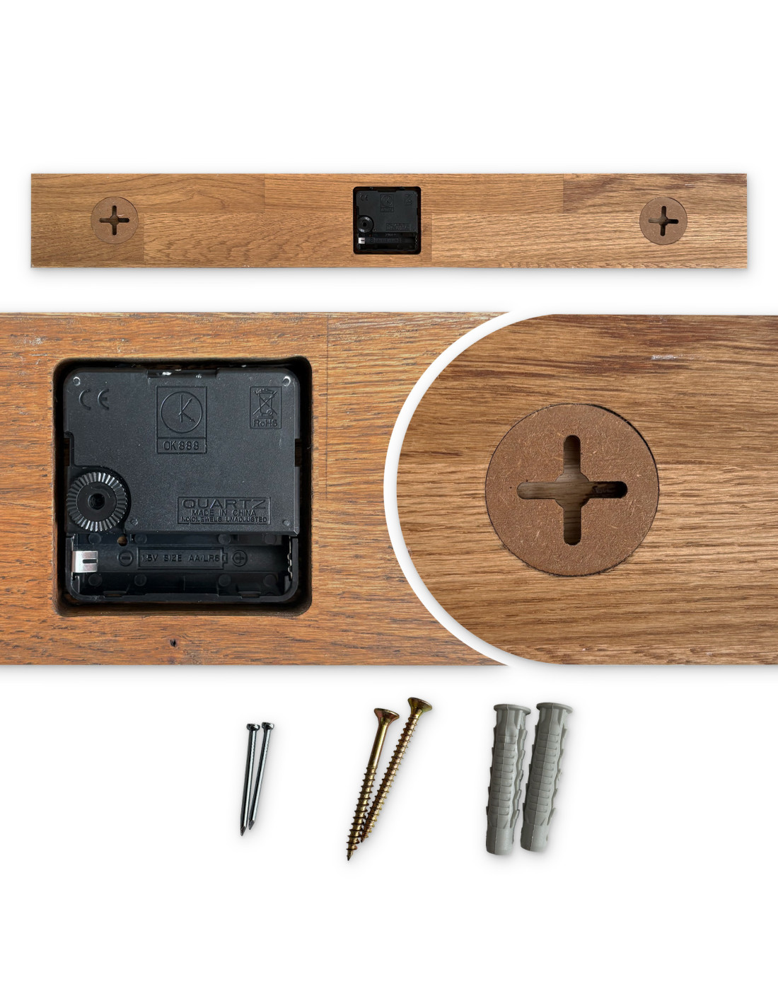 - Természetes és elegáns dizájn - A tölgyfa és a fém mutatók kombinációja modern, mégis időtlen megjelenést kölcsönöz.