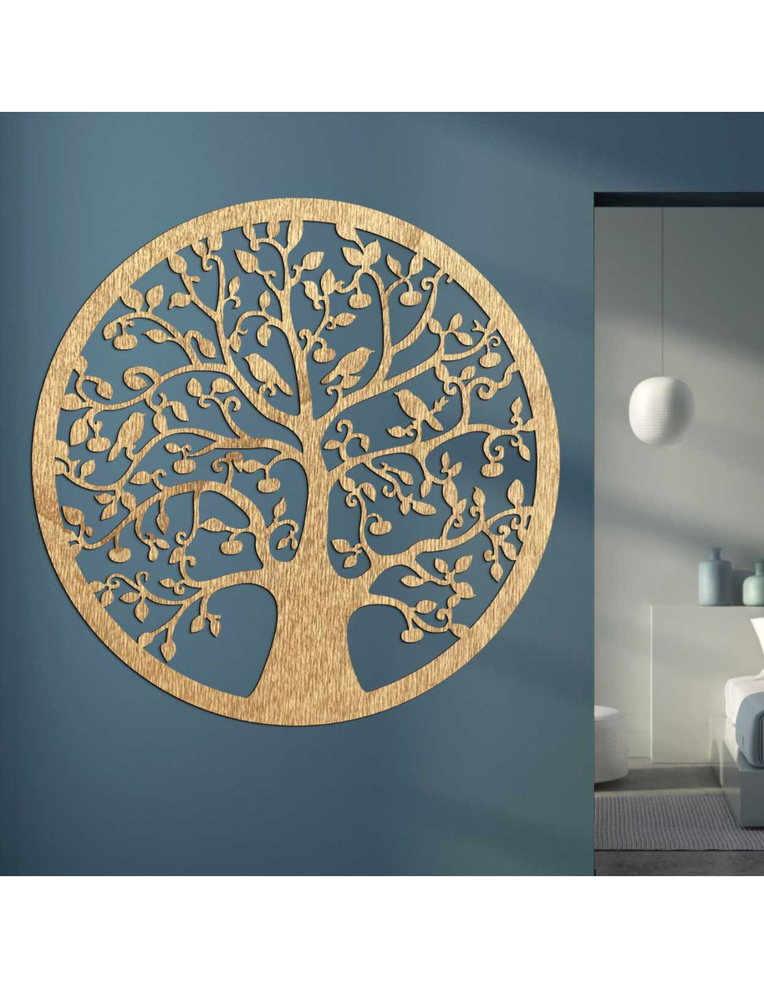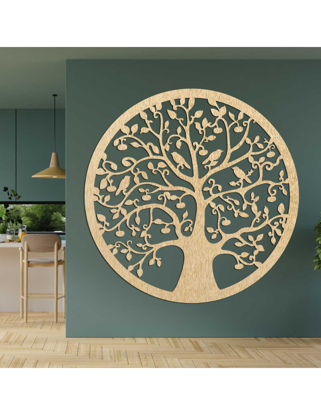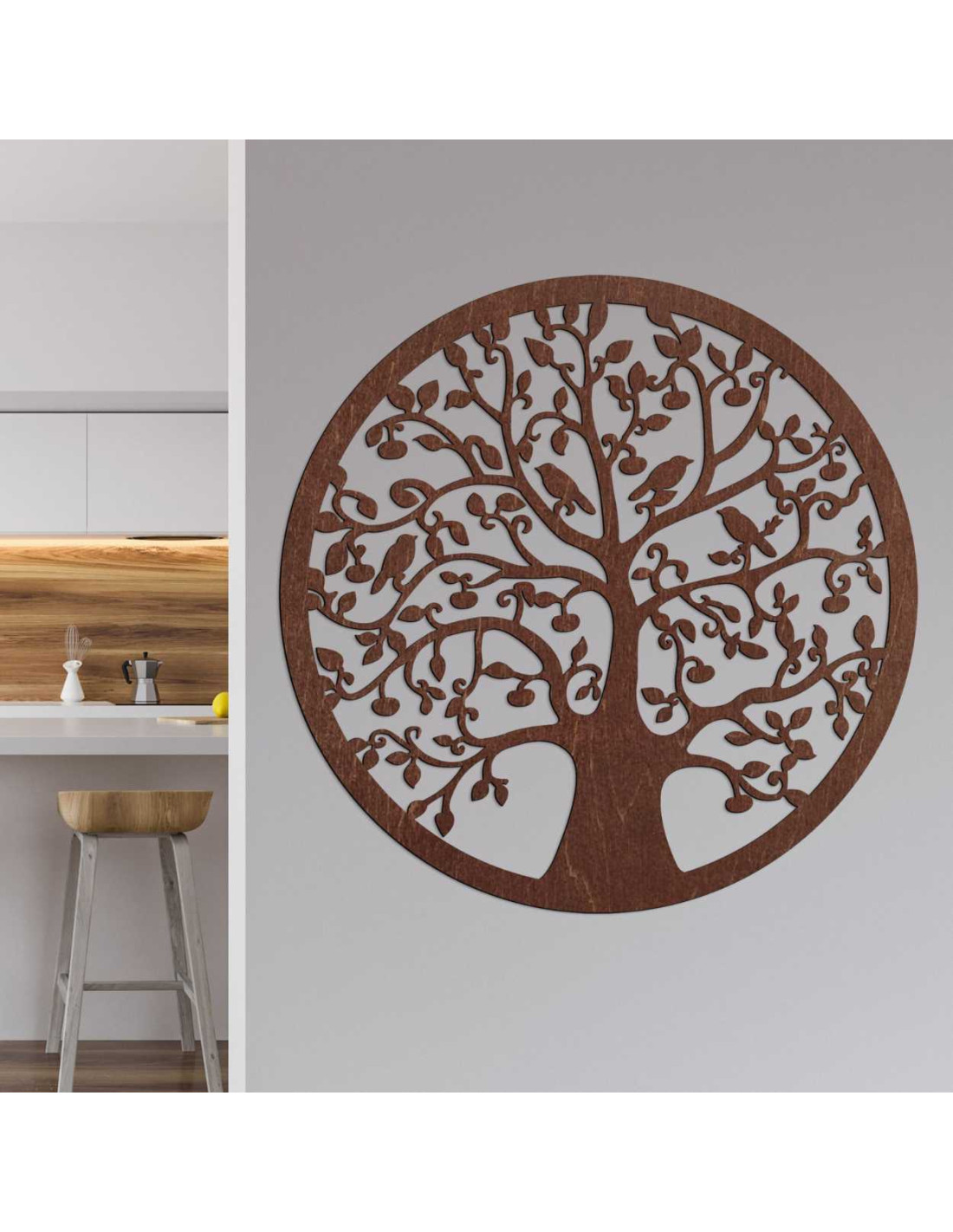 Fából készült, kör alakú életfa a falon - ARBORVITAE