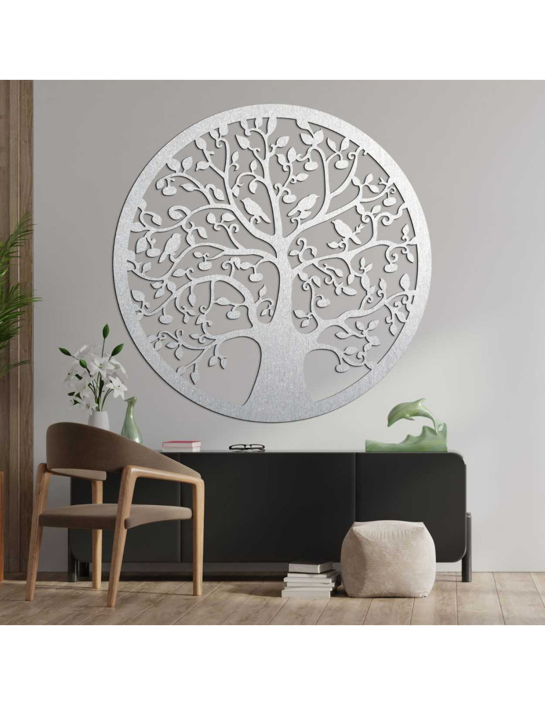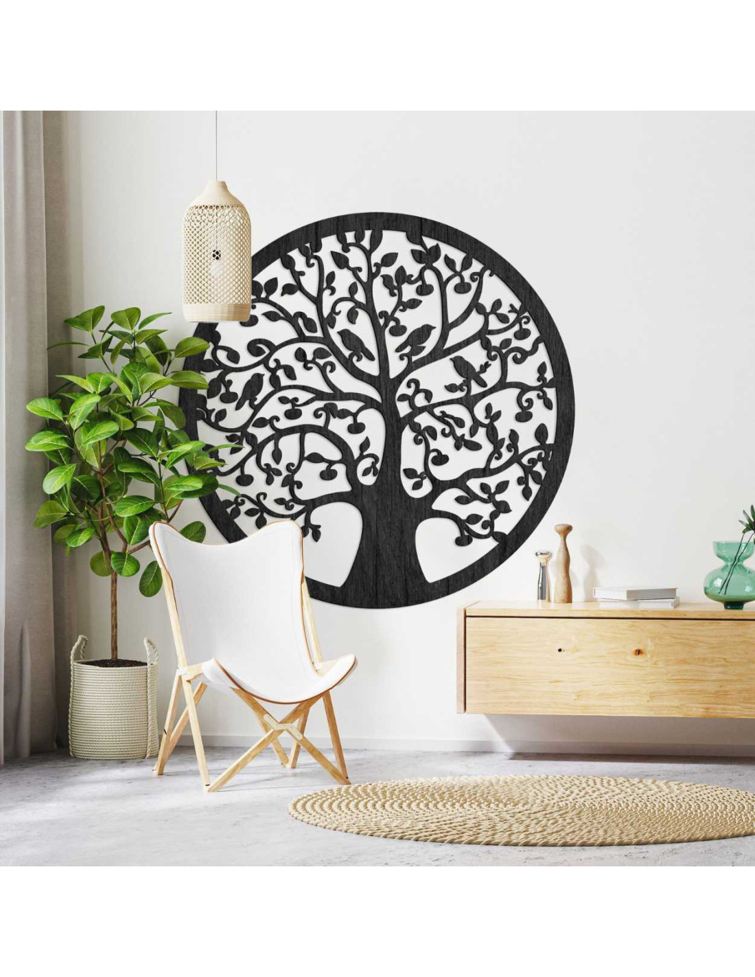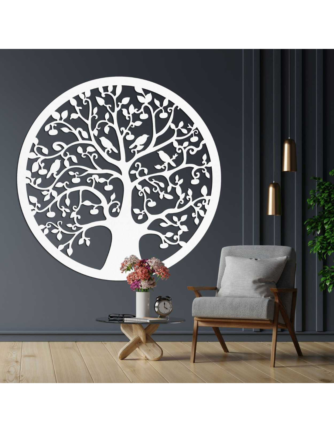 Fából készült, kör alakú életfa a falon - ARBORVITAE