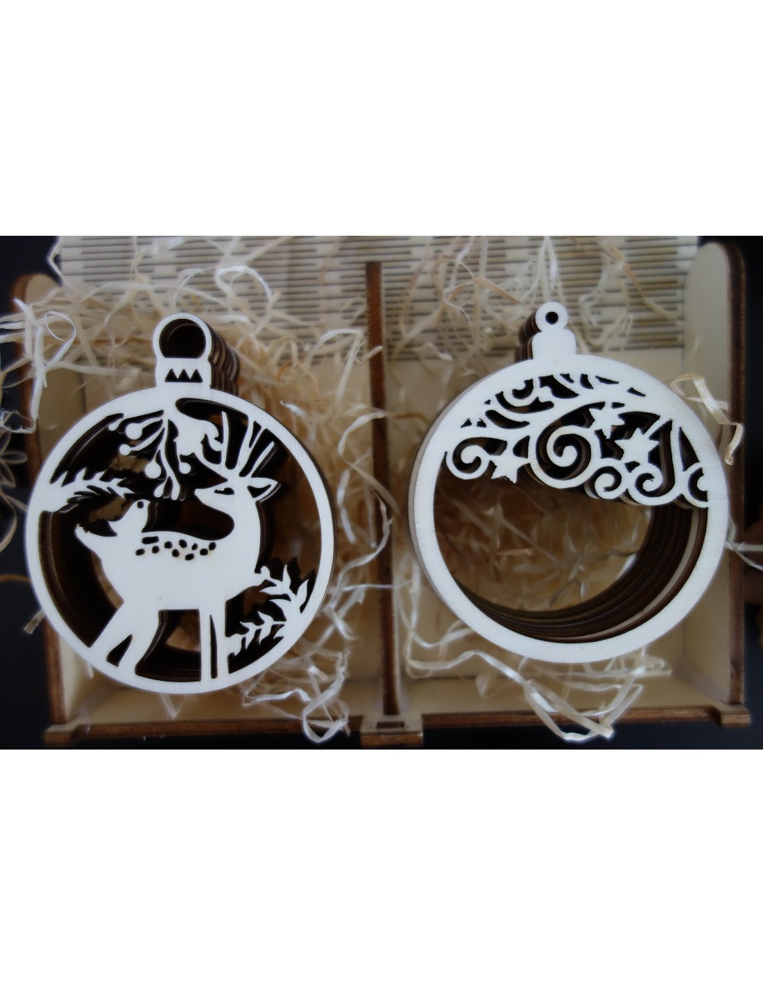 Vintage karácsonyfadíszek fából, 1 szett - 12 darabos STYLESA PR042