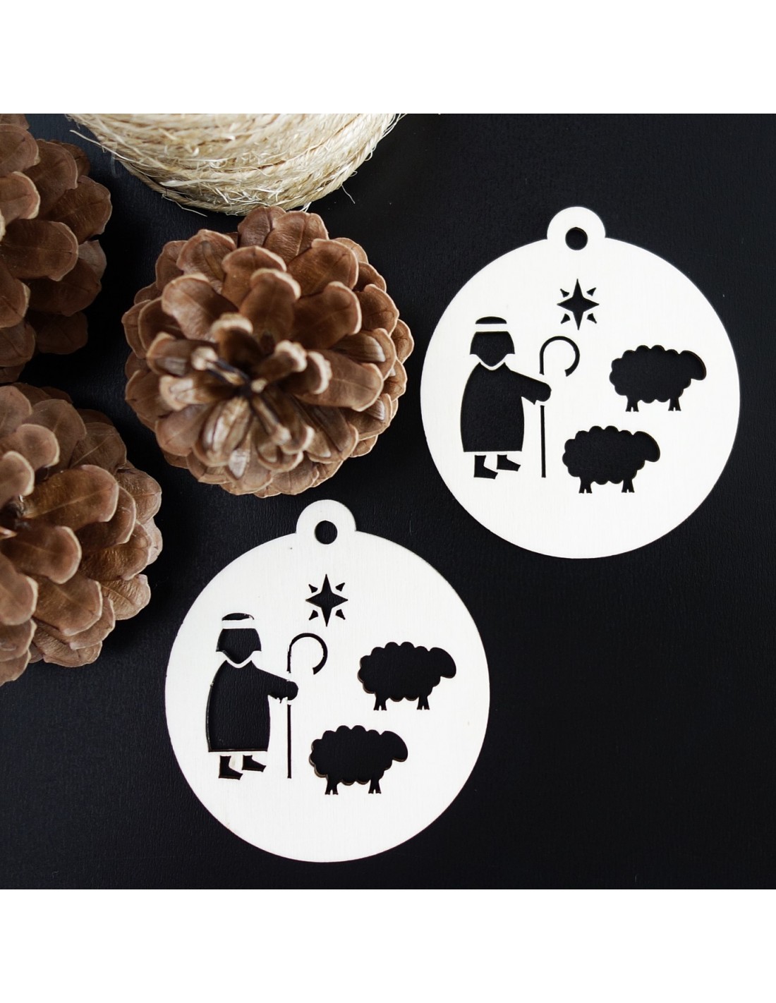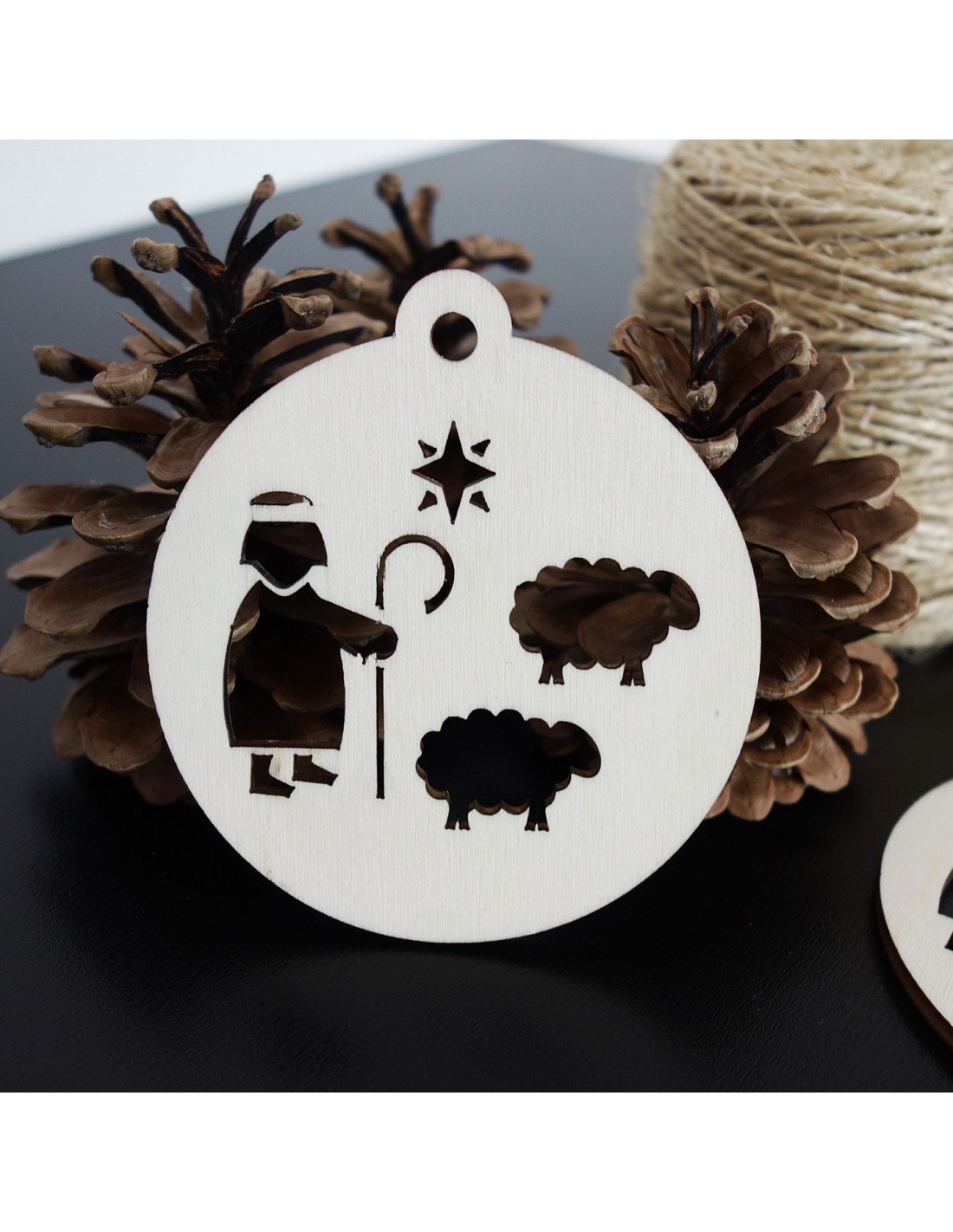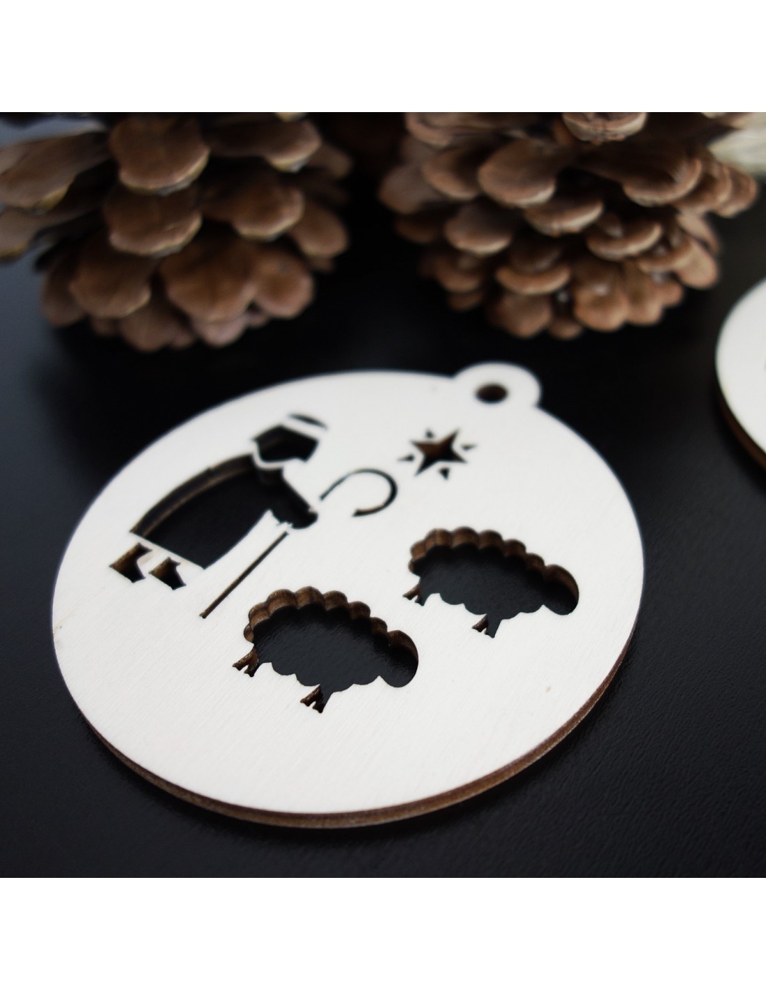 Karácsonyfadísz fából - Pásztor, méret: 79x90 mm