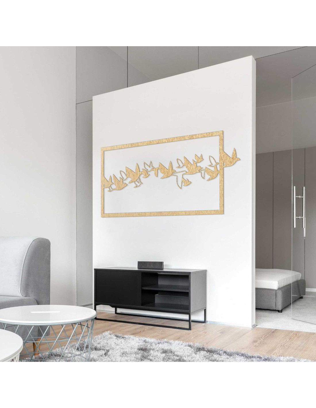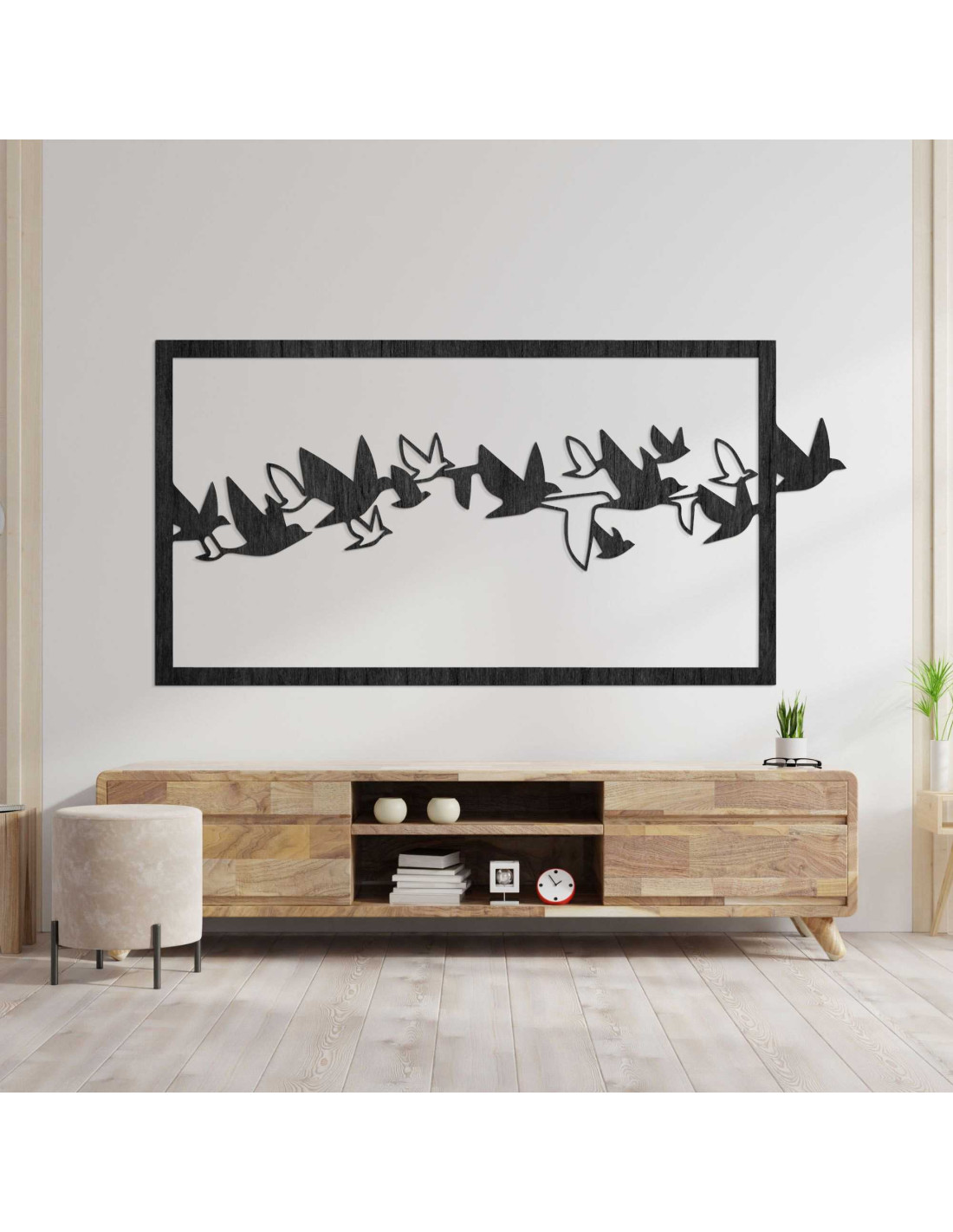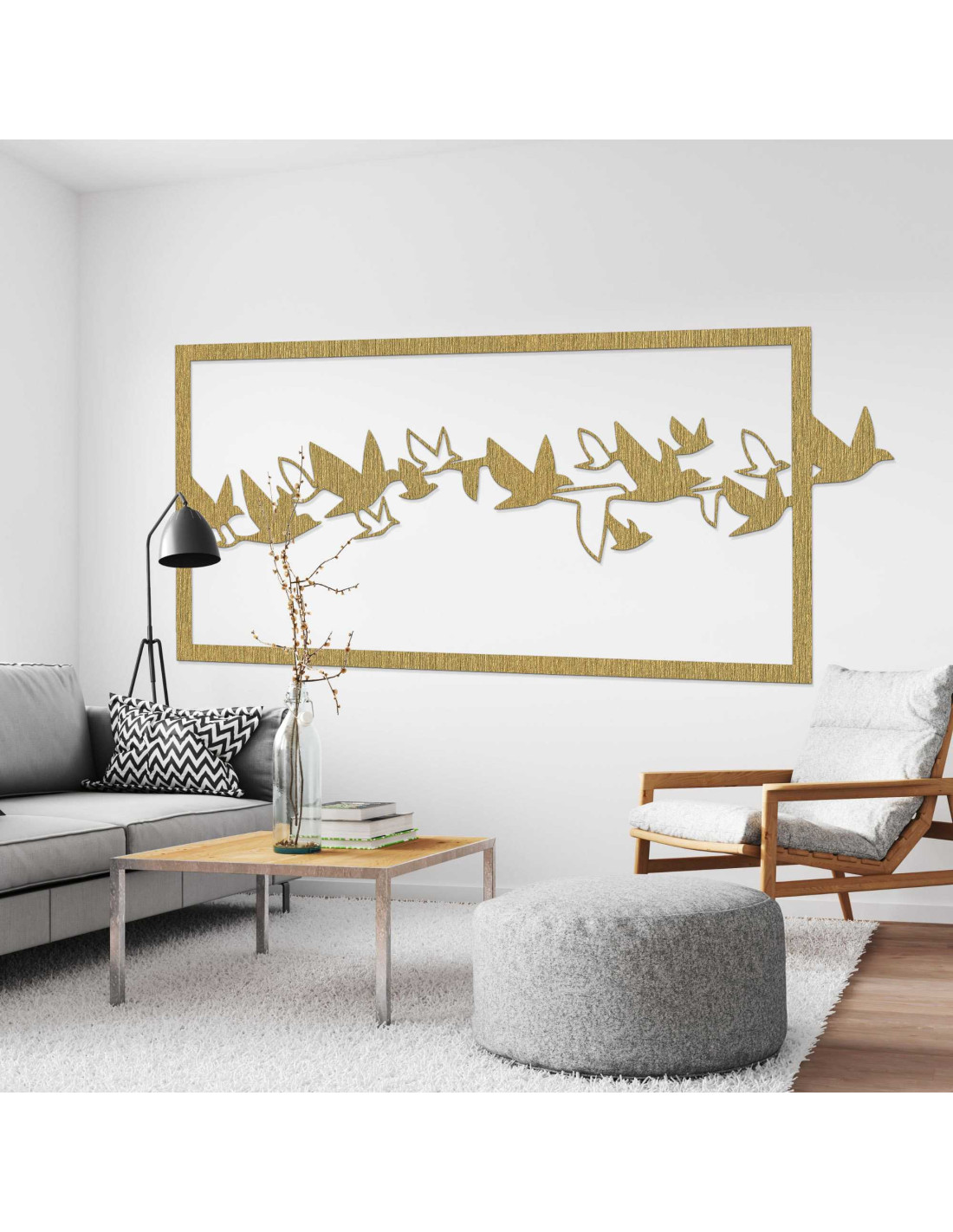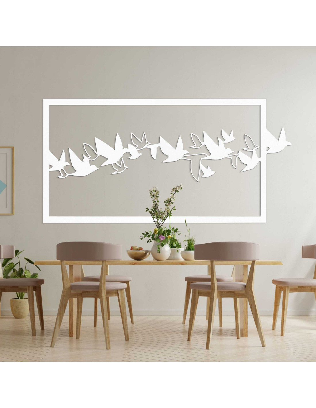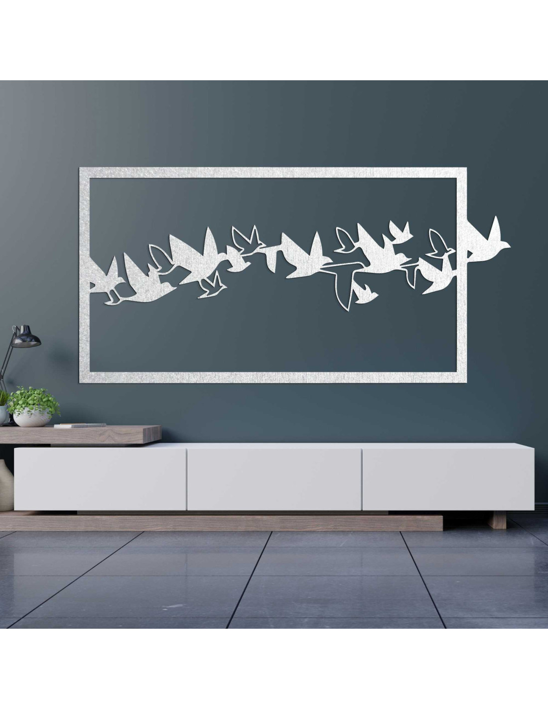 SentopEgy madárraj dinamikus sziluettje az idő megfagyott pillanatának tűnik. A dizájn könnyedén és eleganciával ragadja meg a mozgást, élénk benyomást keltve. A precíz kidolgozás tisztaságot és időtlen jelleget kölcsönöz az egésznek. Az összkép nyugodt , mégis precízen kiegyensúlyozott .