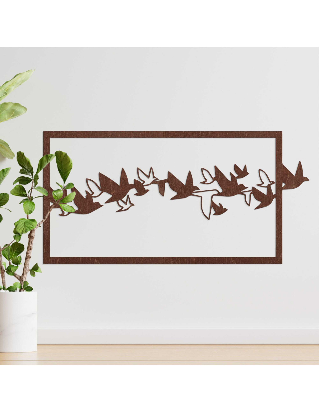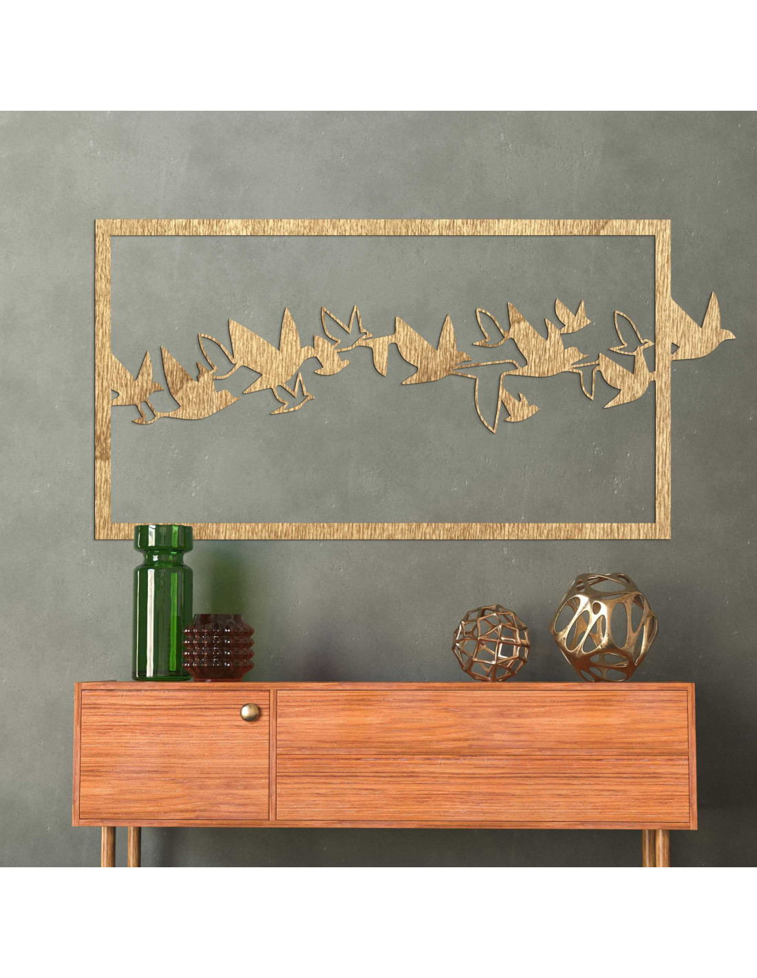 A repülés közben megörökített madarak a szabadságot , a nyitottságot és az új horizontok utáni vágyat szimbolizálják. Elrendezésük ritmust teremt, amely természetesen vezeti a tekintetet az egész felületen . Az éles vonalak és a kontrasztos formák hangsúlyozzák az expresszivitást felesleges zaj nélkül. Az eredmény egy vizuálisan erőteljes alkotás finom spirituális üzenettel .