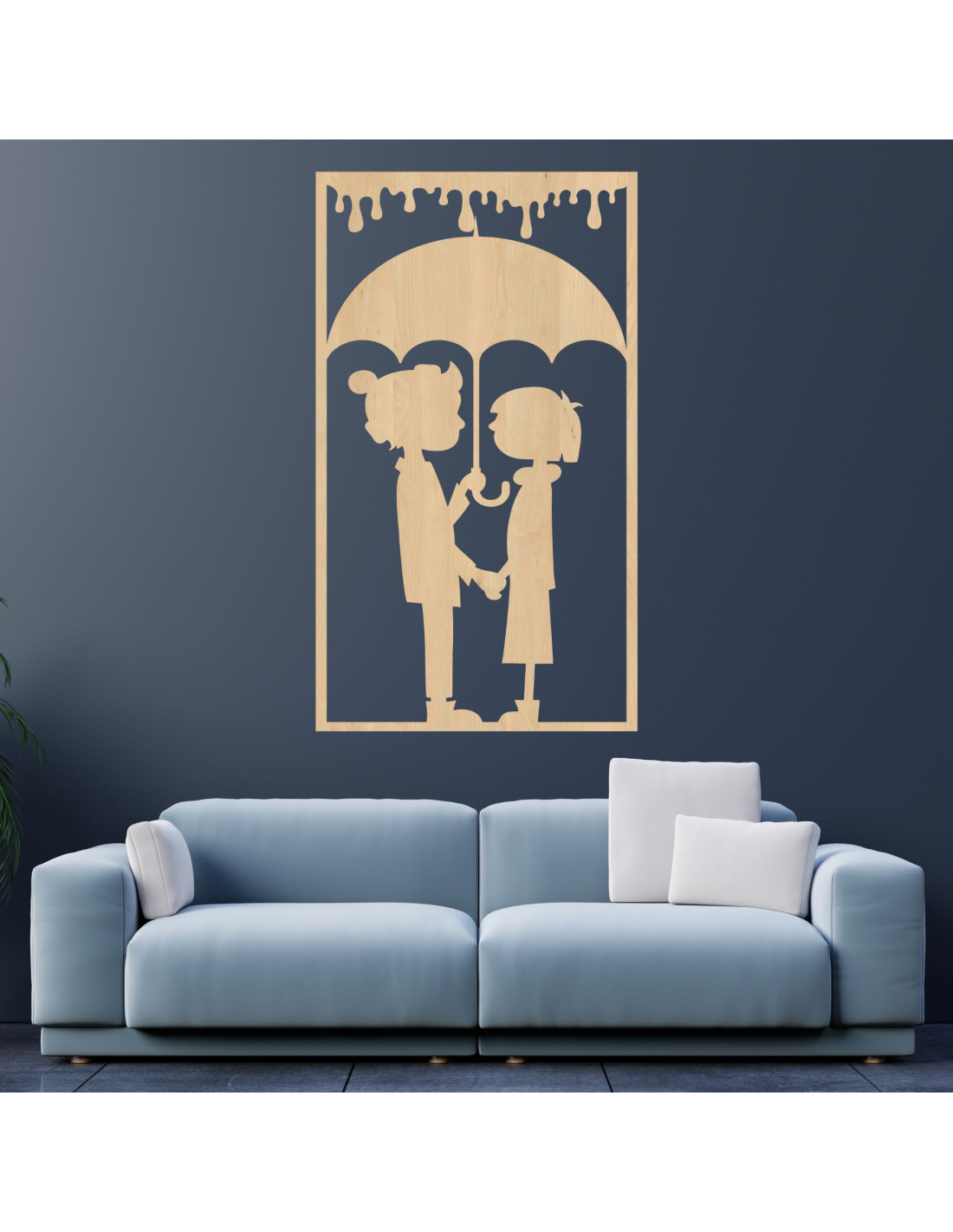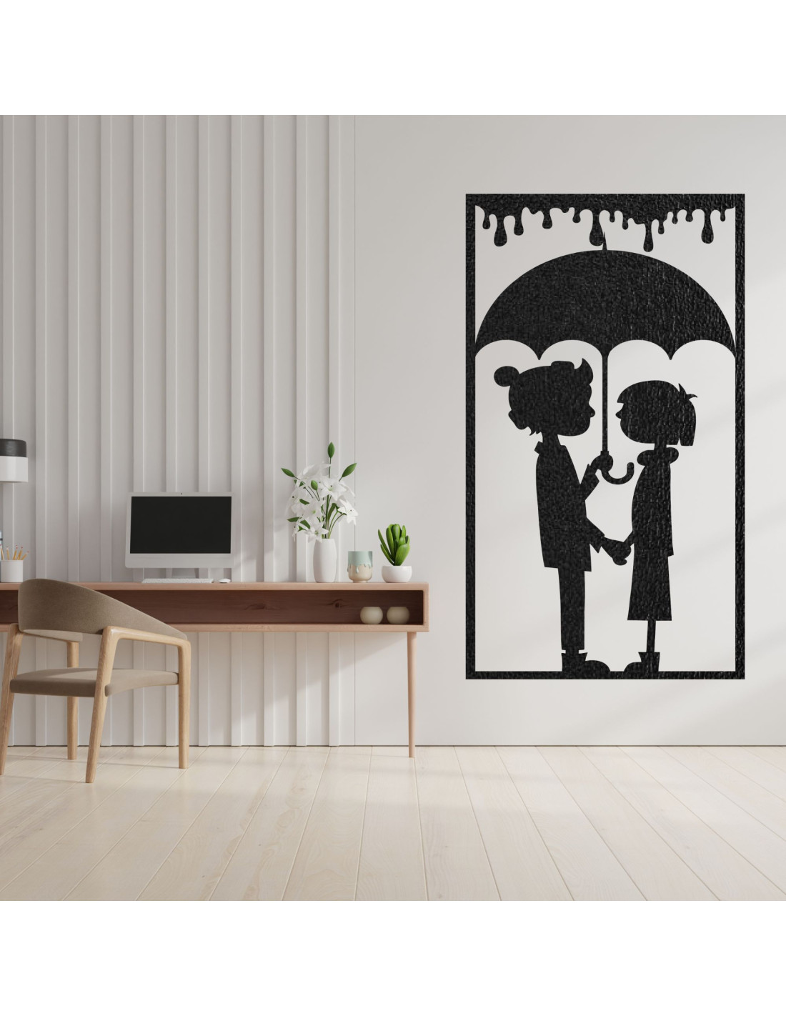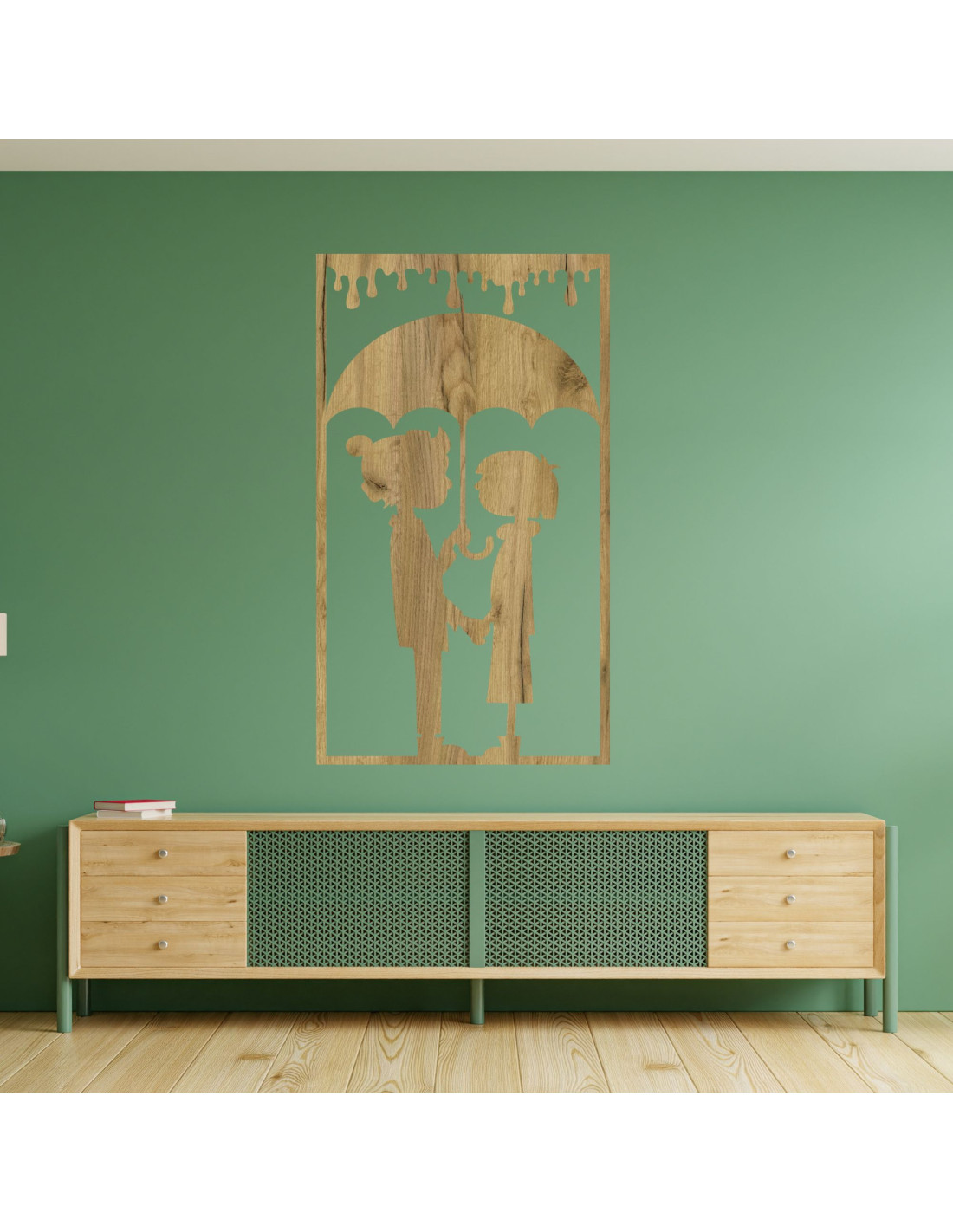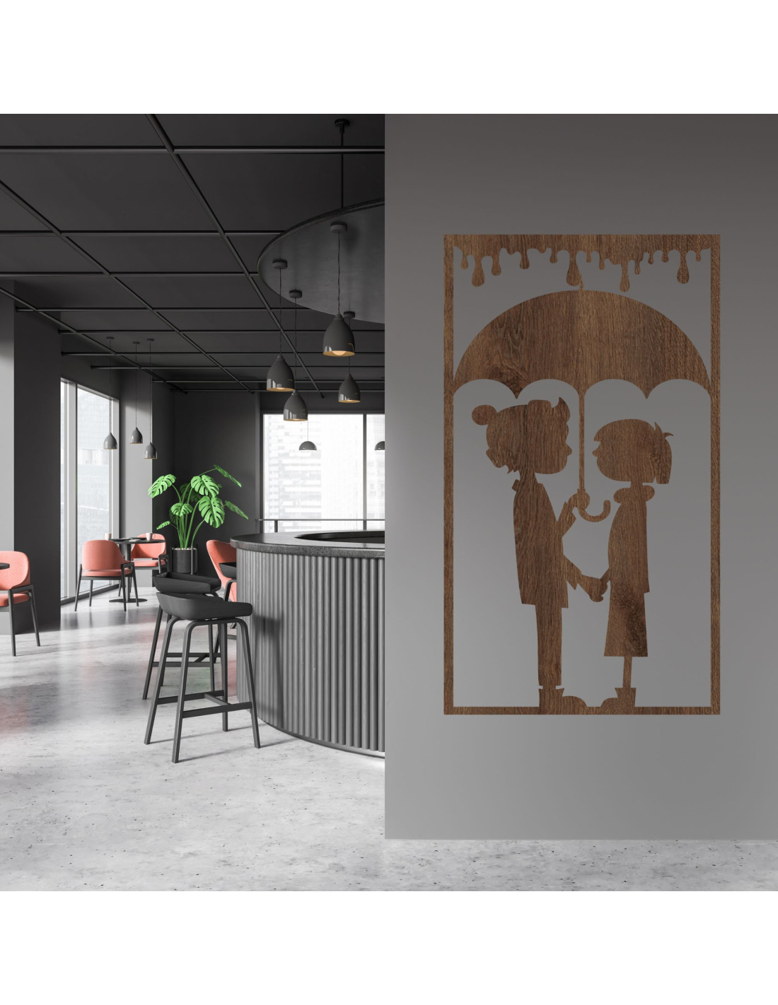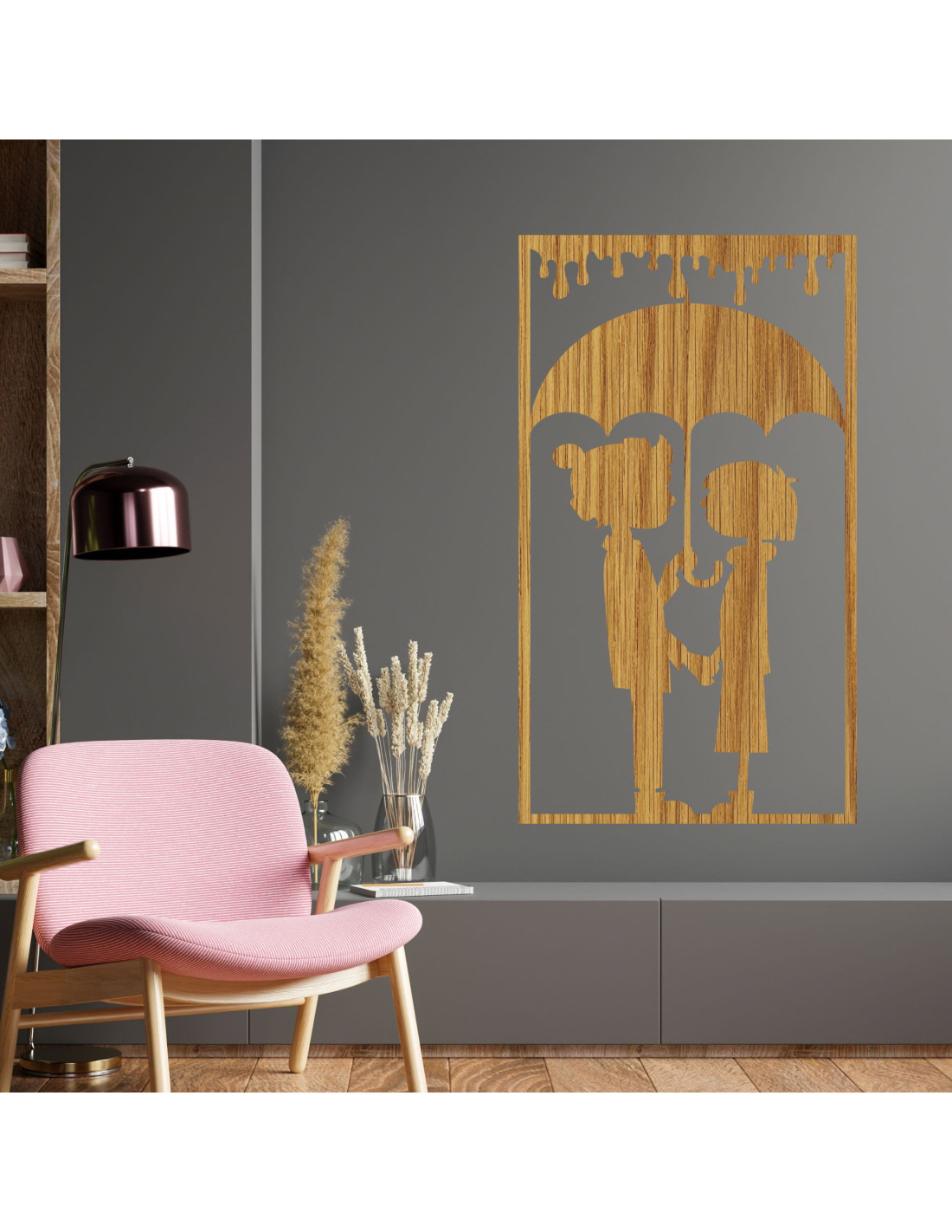 SentopEz a fából készült fali dekoráció két alak sziluettjét örökíti meg, akik egy közös esernyő alatt állnak. A kompozíció egy intim pillanatot teremt, amely a védelem, az összetartozás és a gyengédség érzését tükrözi az alakok között. A sziluett lágy vonalvezetése növeli a design eleganciáját és időtlenségét. Ideális dekorációs elemként egy olyan enteriőrbe, amelynek szüksége van egy csipetnyi romantikára és történetre.