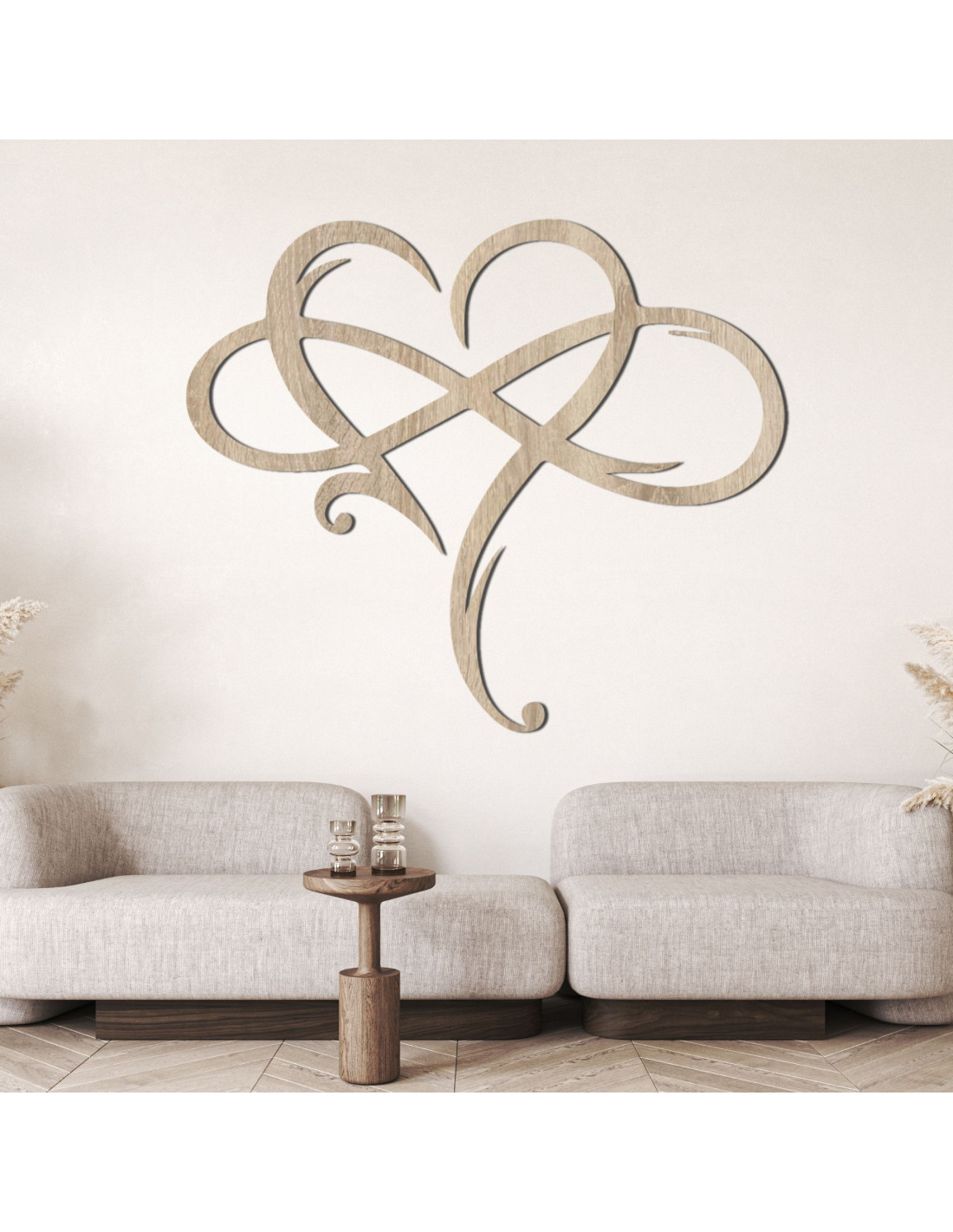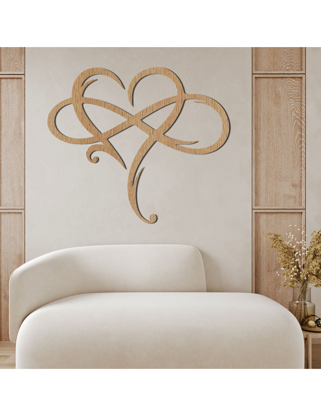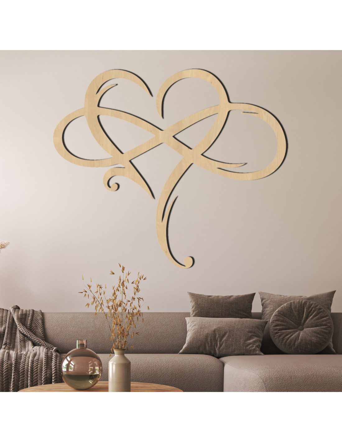 A minőségi fából aprólékosan megmunkált, végtelen szív alakú kép az örök szerelem és az erős kapcsolat szimbóluma. Ez az egyedi kialakítás nemcsak esztétikai szépséget hoz otthonába, hanem a harmónia, a stabilitás és a pozitív energia érzését is. Ideális dekoráció egy hangulatos és kiegyensúlyozott környezet megteremtéséhez .