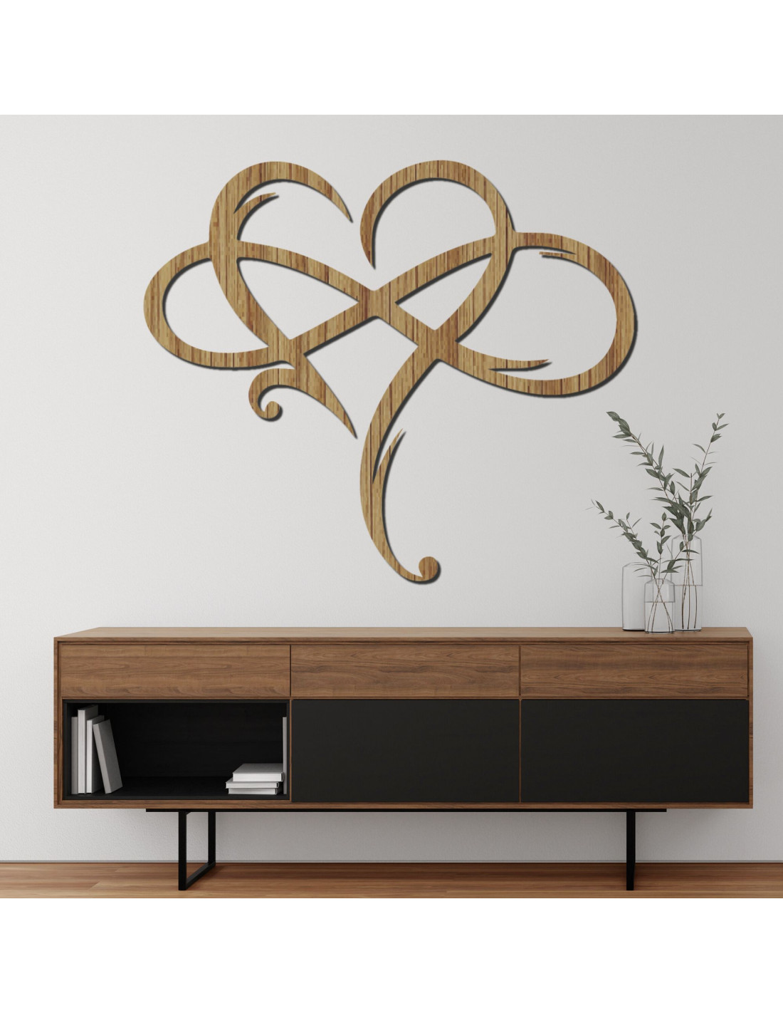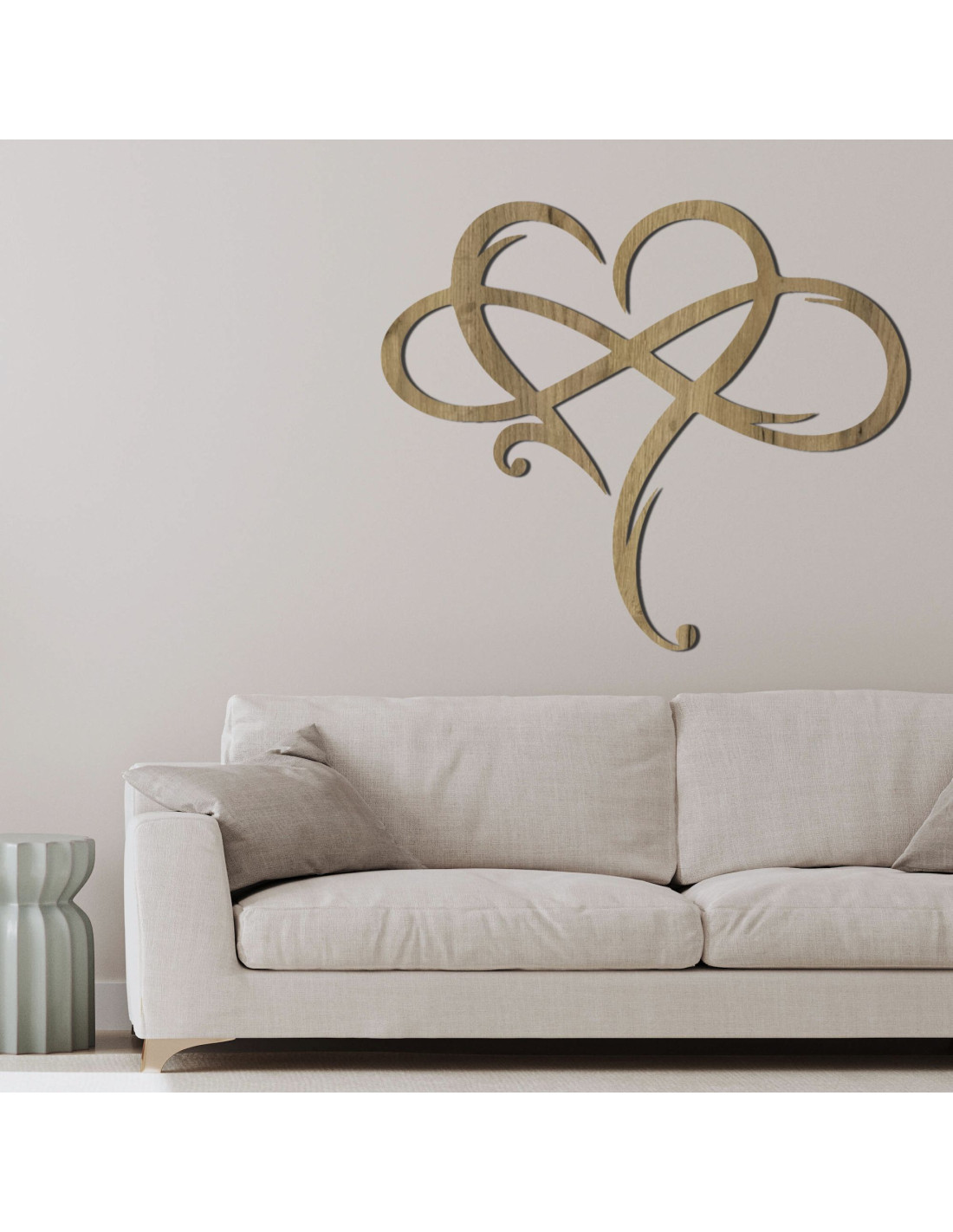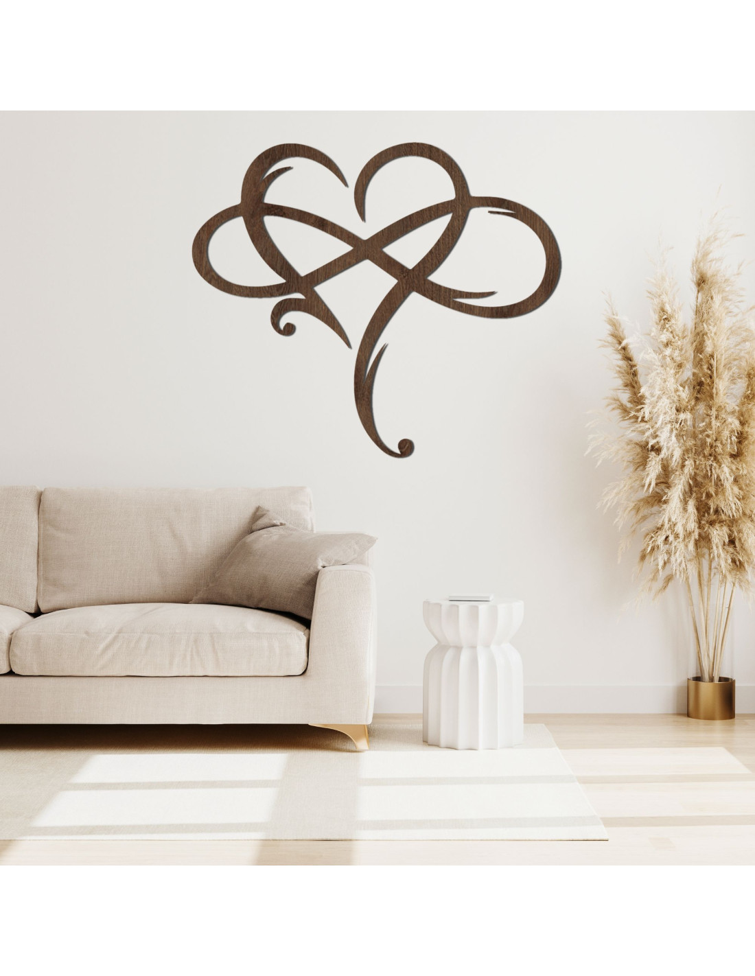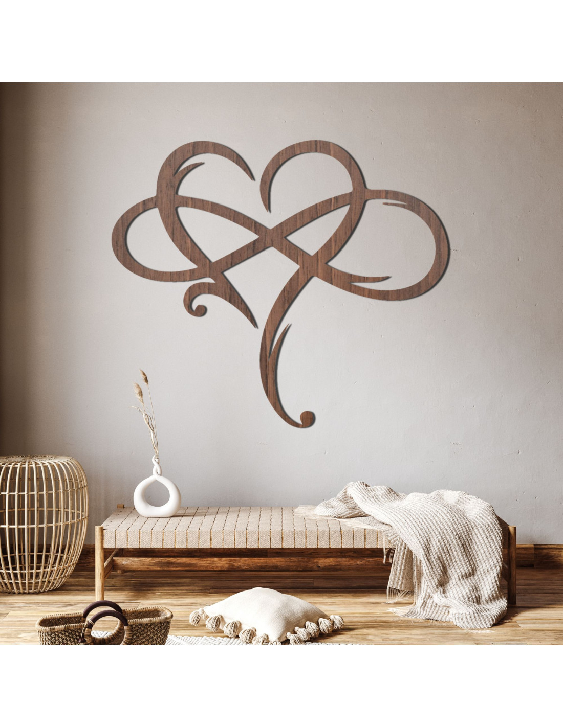 A minőségi fából aprólékosan megmunkált, végtelen szív alakú kép az örök szerelem és az erős kapcsolat szimbóluma. Ez az egyedi kialakítás nemcsak esztétikai szépséget hoz otthonába, hanem a harmónia, a stabilitás és a pozitív energia érzését is. Ideális dekoráció egy hangulatos és kiegyensúlyozott környezet megteremtéséhez .