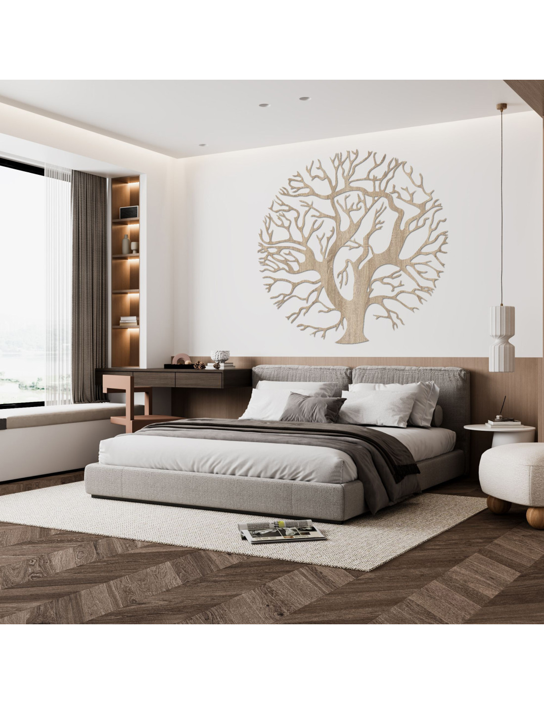 Az elegáns, precízen faragott ágakkal díszített, rétegelt lemezből készült Életfa festmény időtlen esztétikájával és szimbolikájával tűnik ki. A finom részletek harmonikus, légies dizájnt hoznak létre, amely békét, egyensúlyt és egy csipetnyi természetet visz az enteriőrbe. Természetes jellegének köszönhetően ez a festmény tökéletesen illik mind a modern, mind a klasszikus enteriőrökbe , és könnyen kombinálható fával, kővel vagy növényekkel.