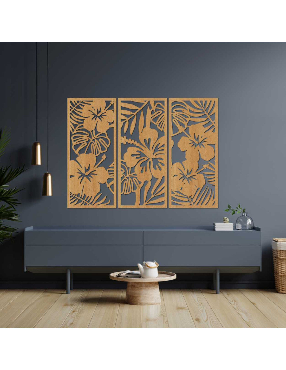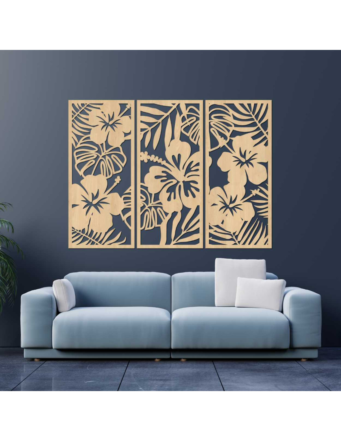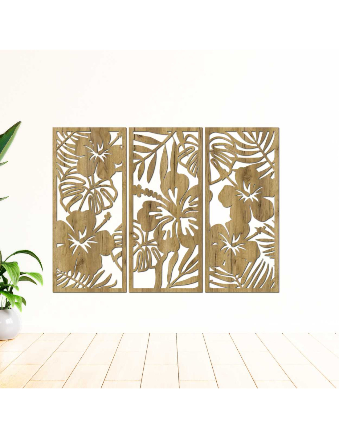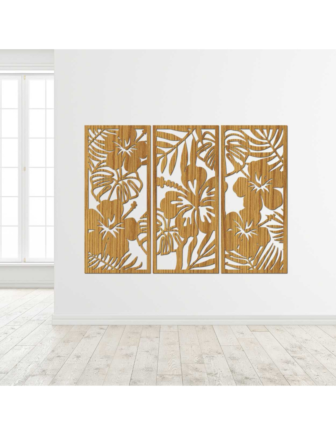 SentopAz egzotikus virágokkal díszített elegáns, háromrészes festmény egy kis trópusi kényelmet visz a térbe.