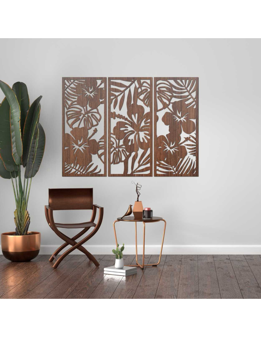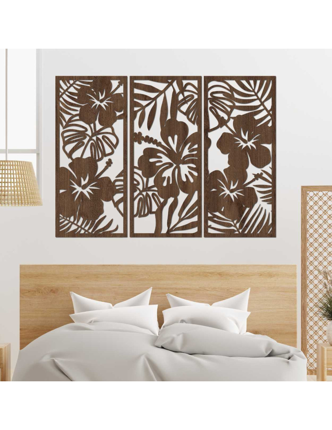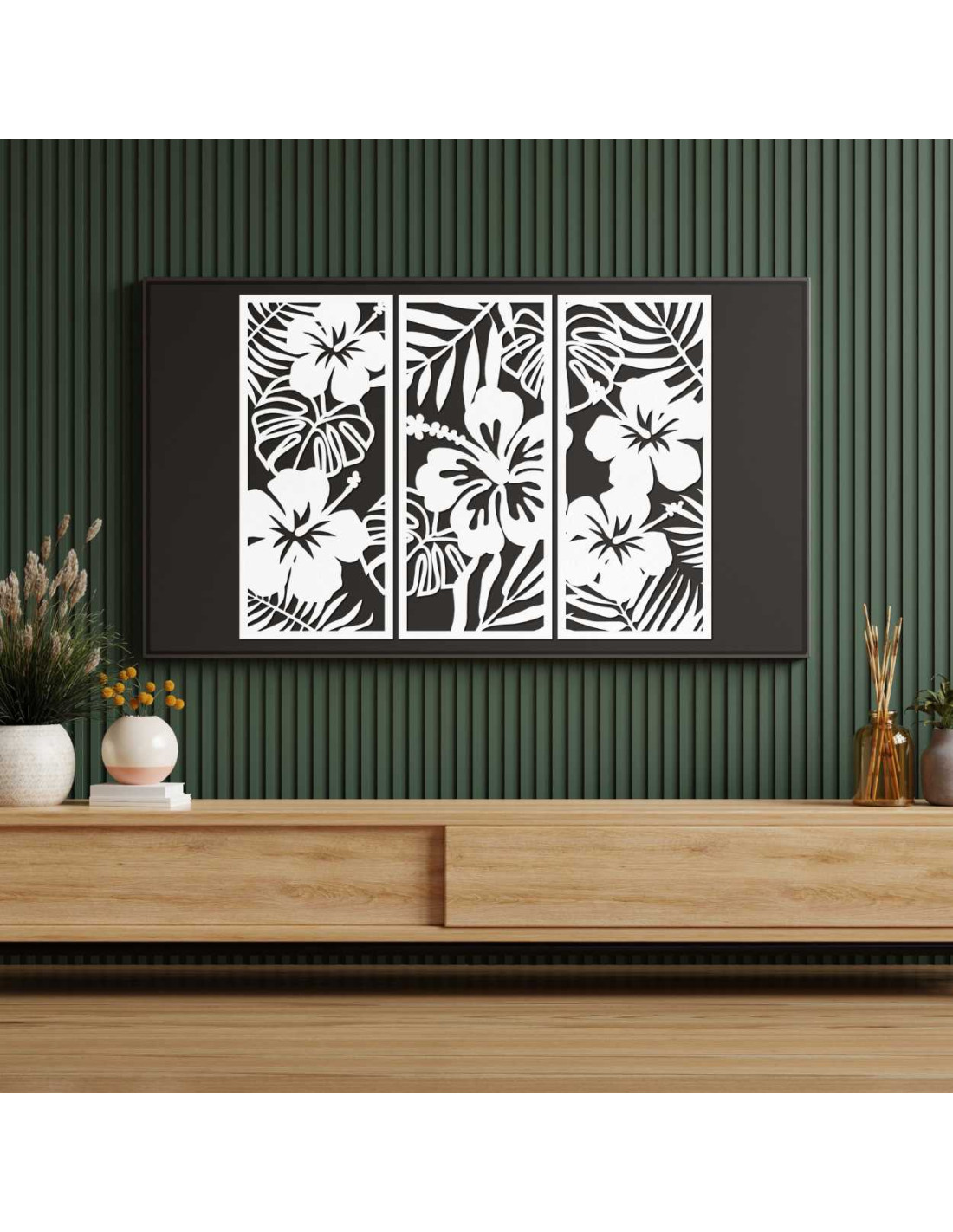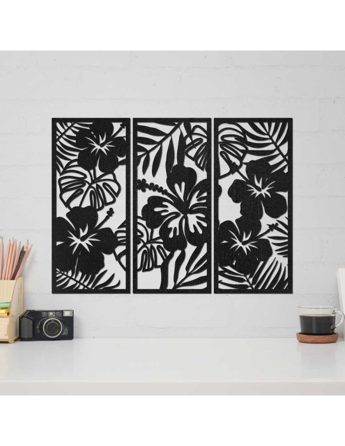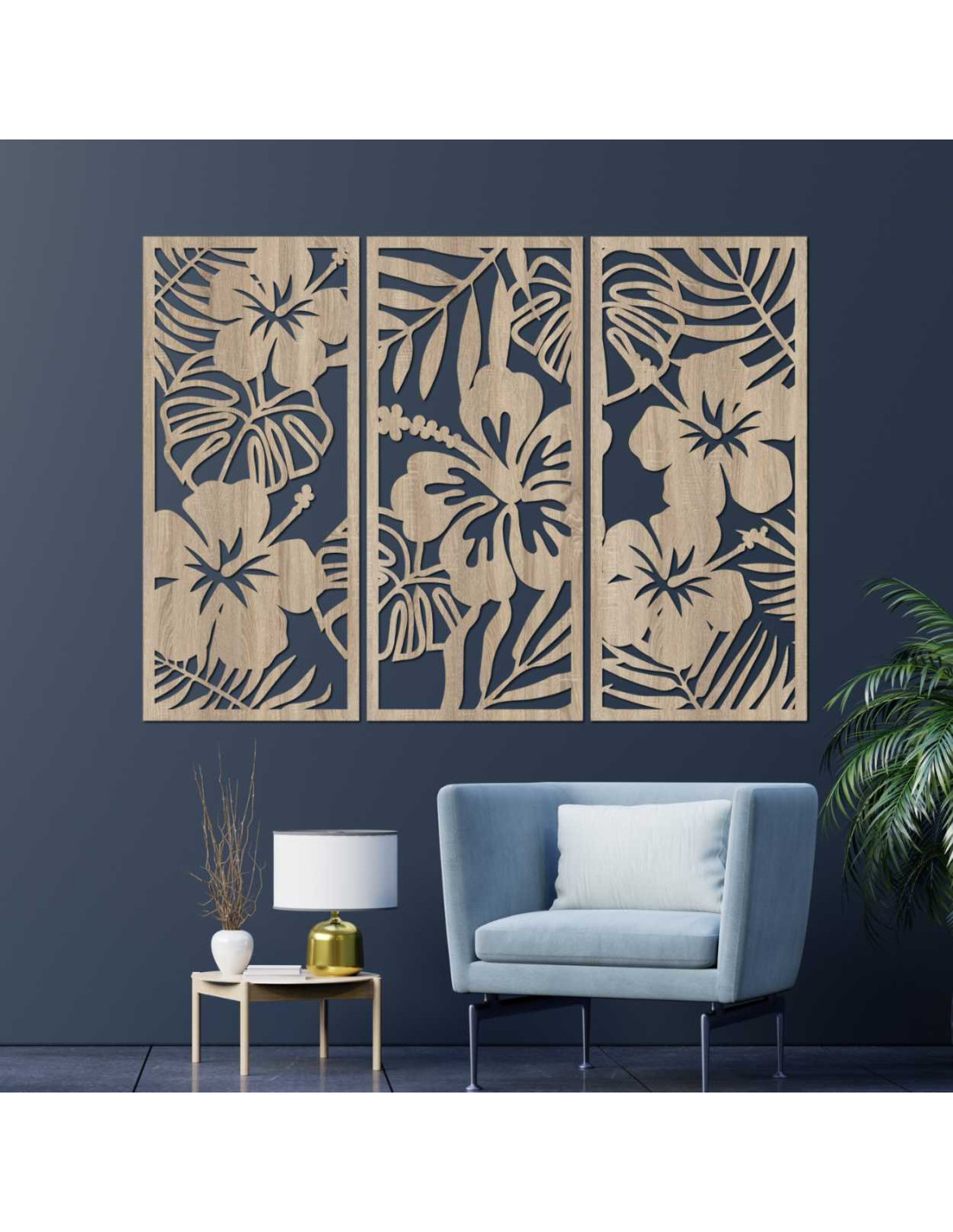 SentopAz egzotikus virágokkal díszített elegáns, háromrészes festmény egy kis trópusi kényelmet visz a térbe.