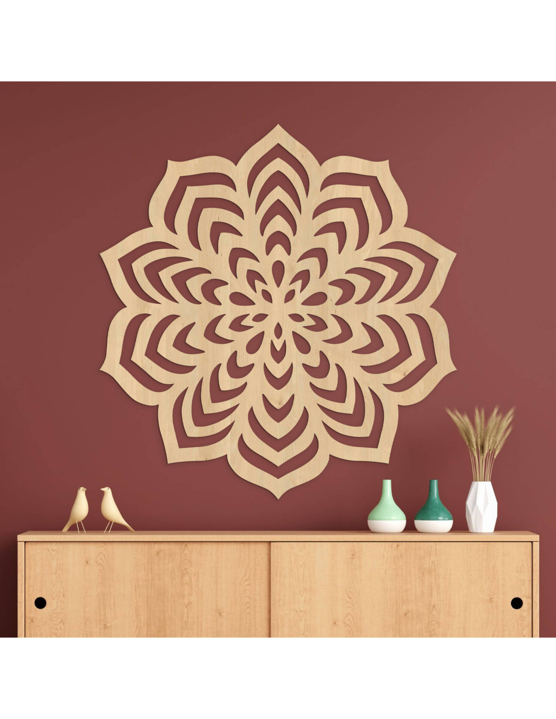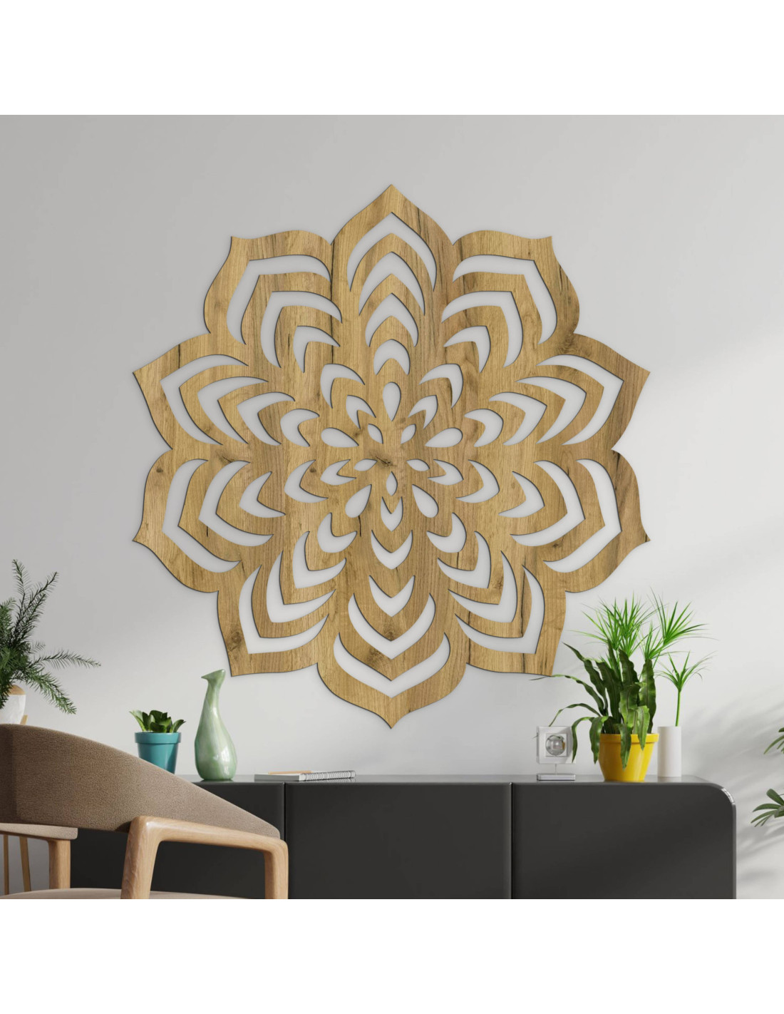 A fából készült mandala a mozgást a nyugalomban, az egyszerűséget pedig az összetettségben ragadja meg.