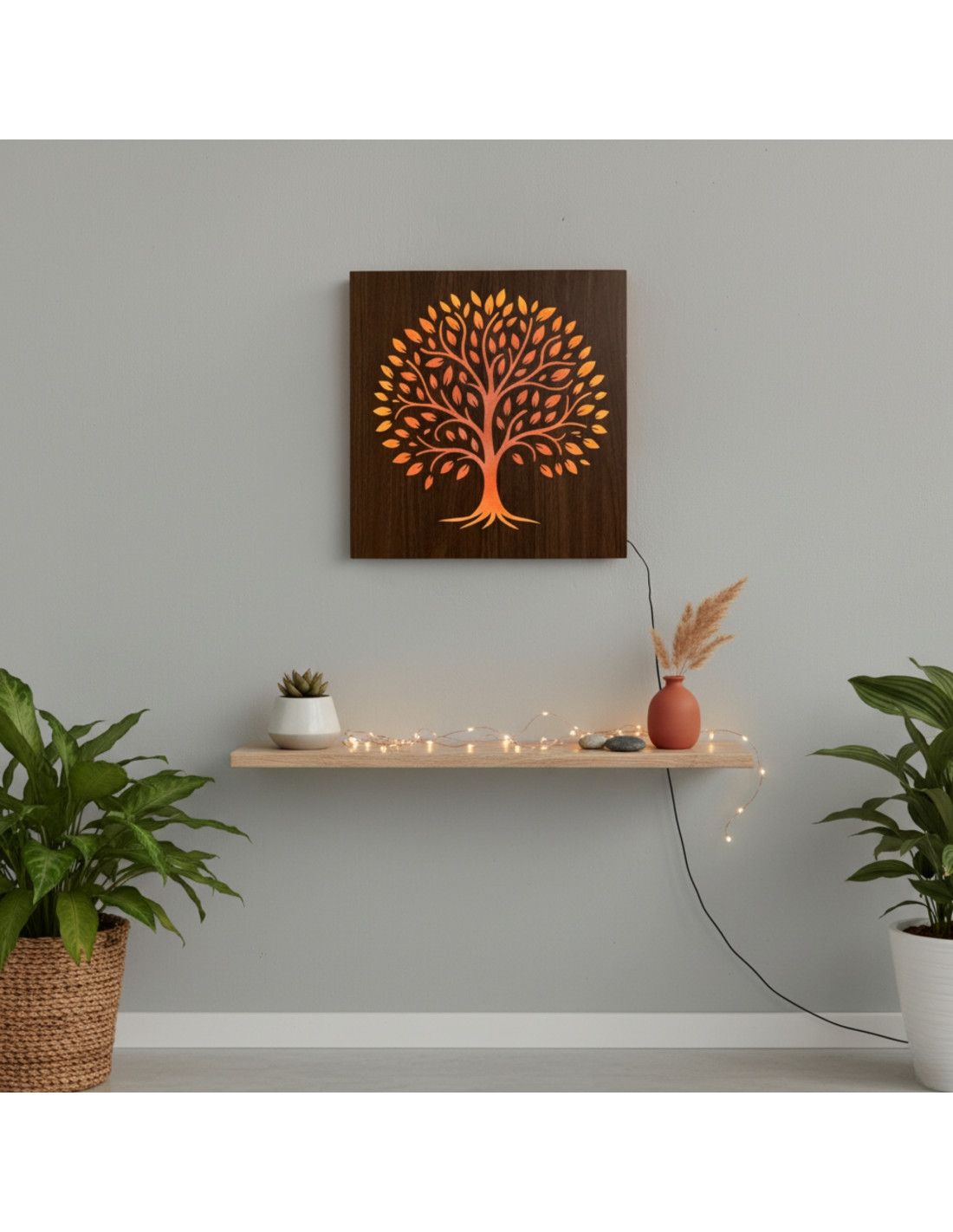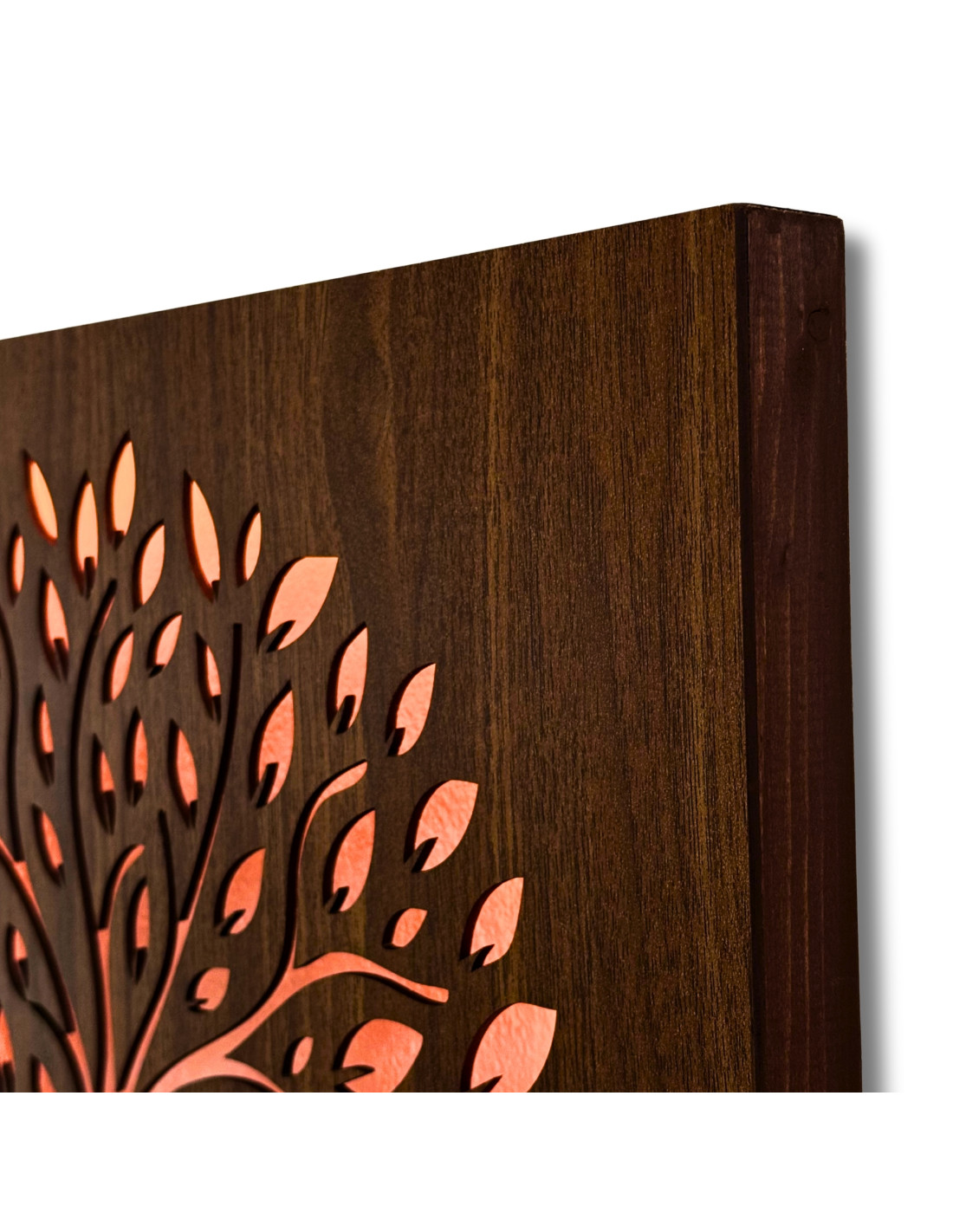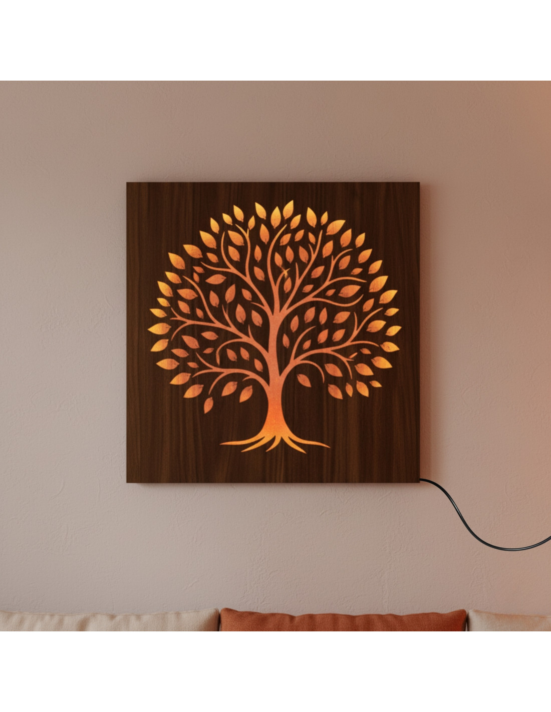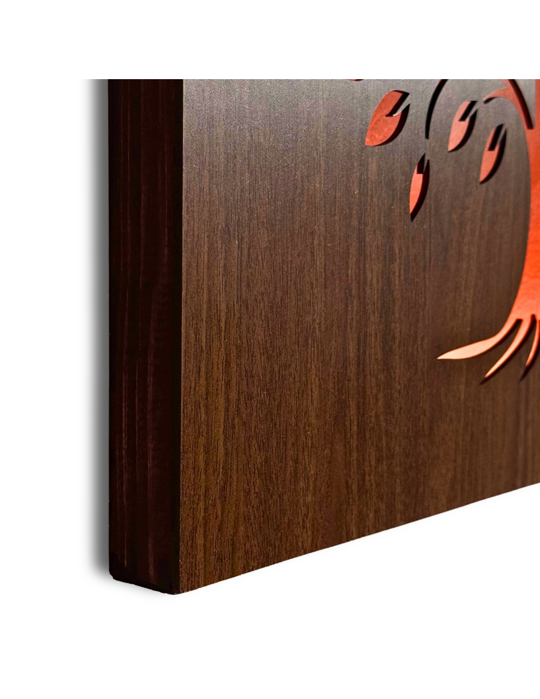 Ez a fából készült LED-es fényfestmény a természetes dizájnt a modern technológiával ötvözi , lenyűgöző fényhatást hozva létre , amely vonzza a figyelmet és otthonossá varázsol bármilyen belső teret .