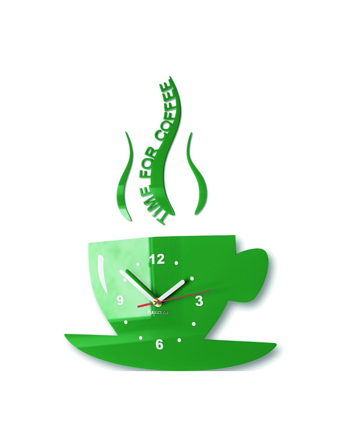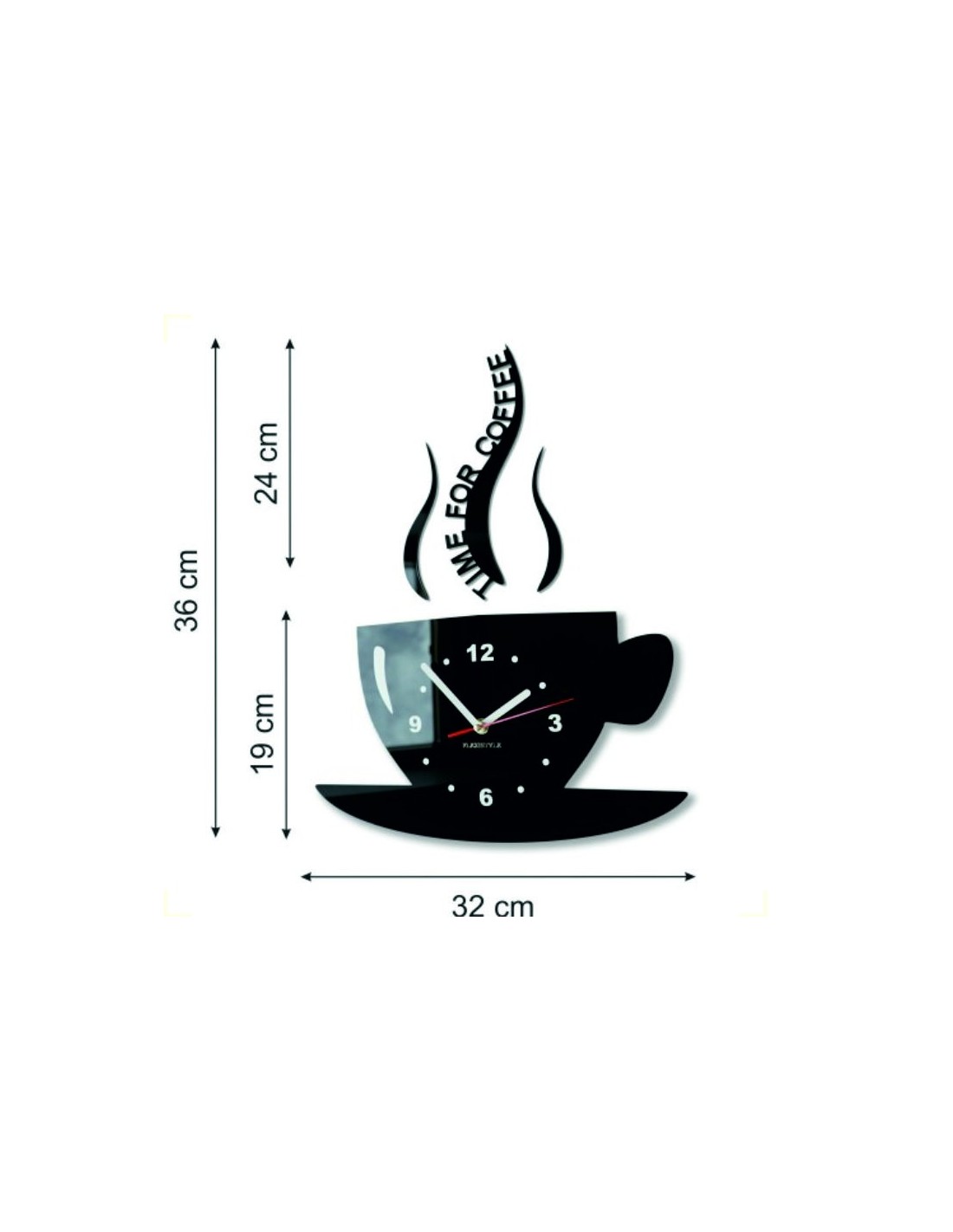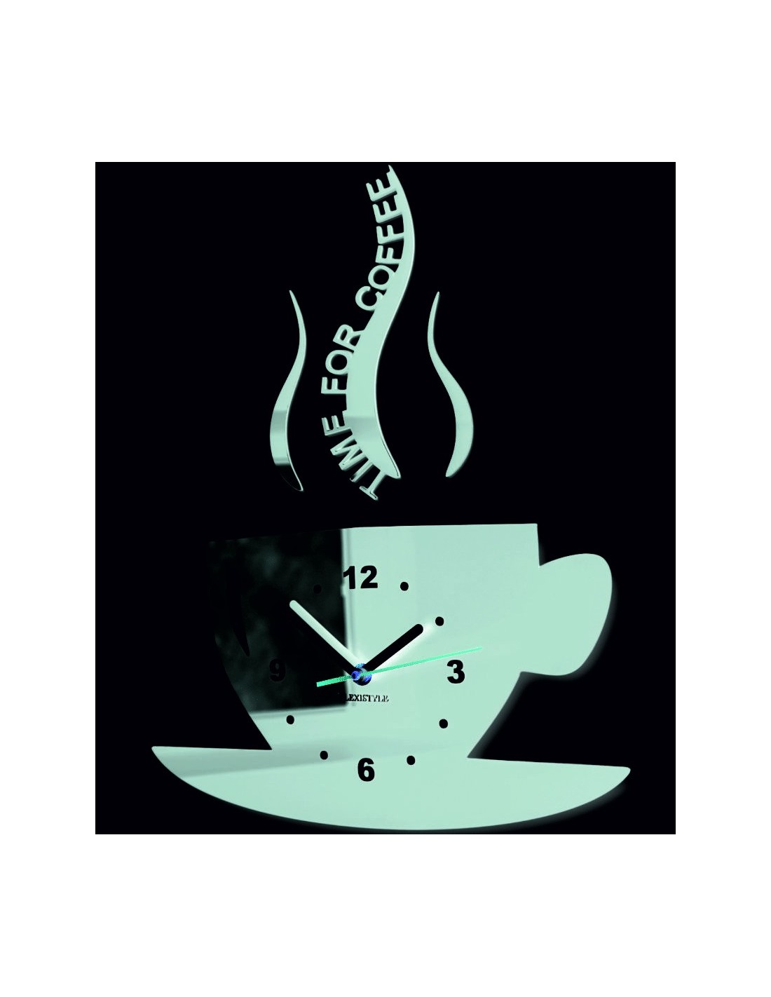 Modern díszes falióra. Az óra PMMA akrilüvegből készült. Ez az anyag /plexiüveg/ modern és esztétikus megjelenésű, könnyű és hatszor erősebb, mint a hagyományos üveg.