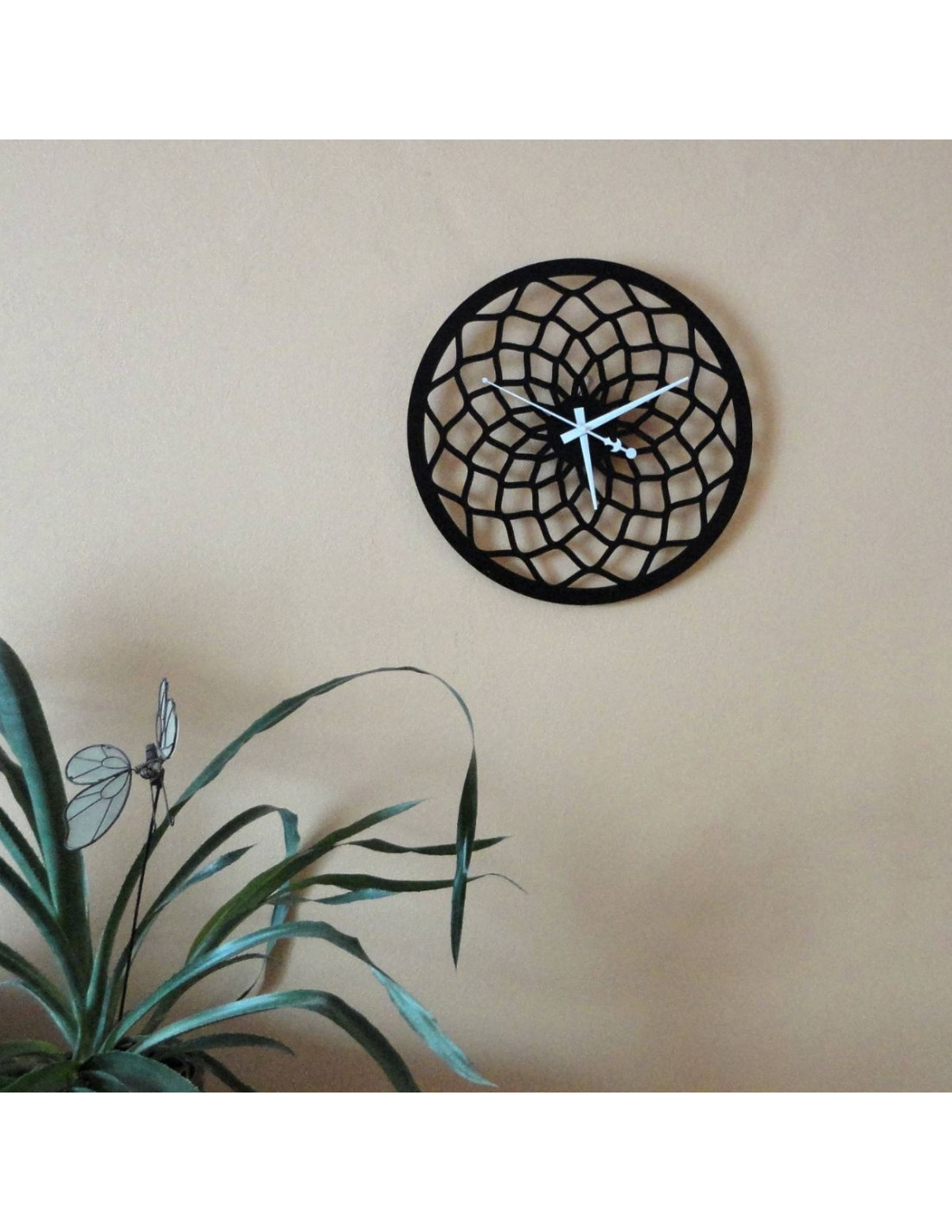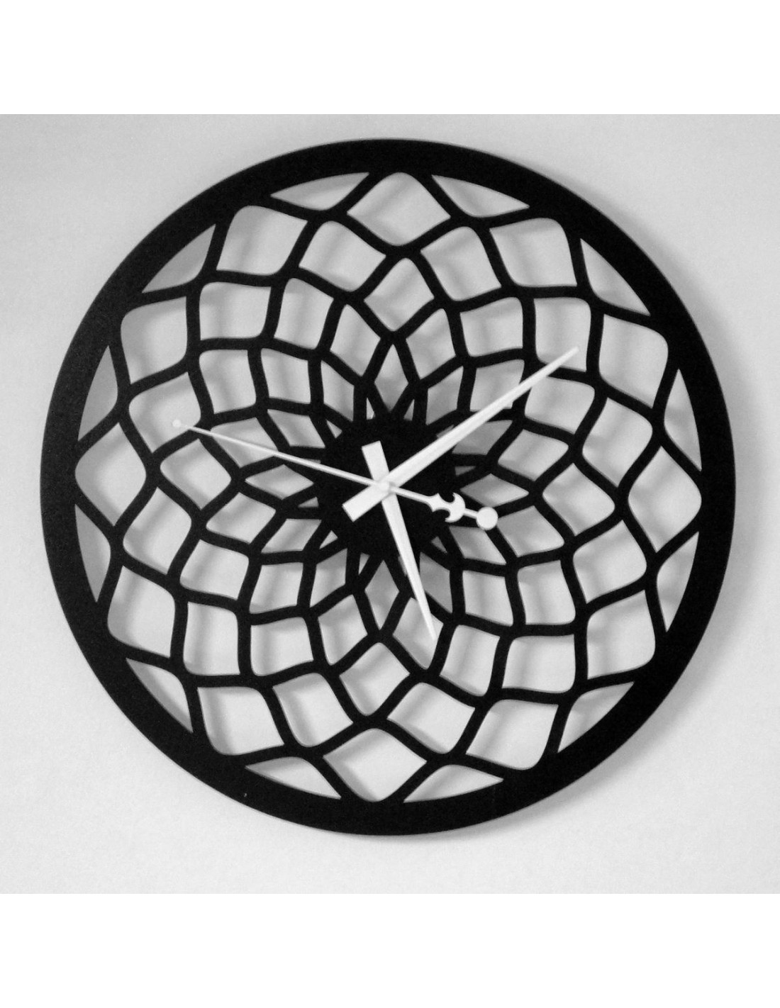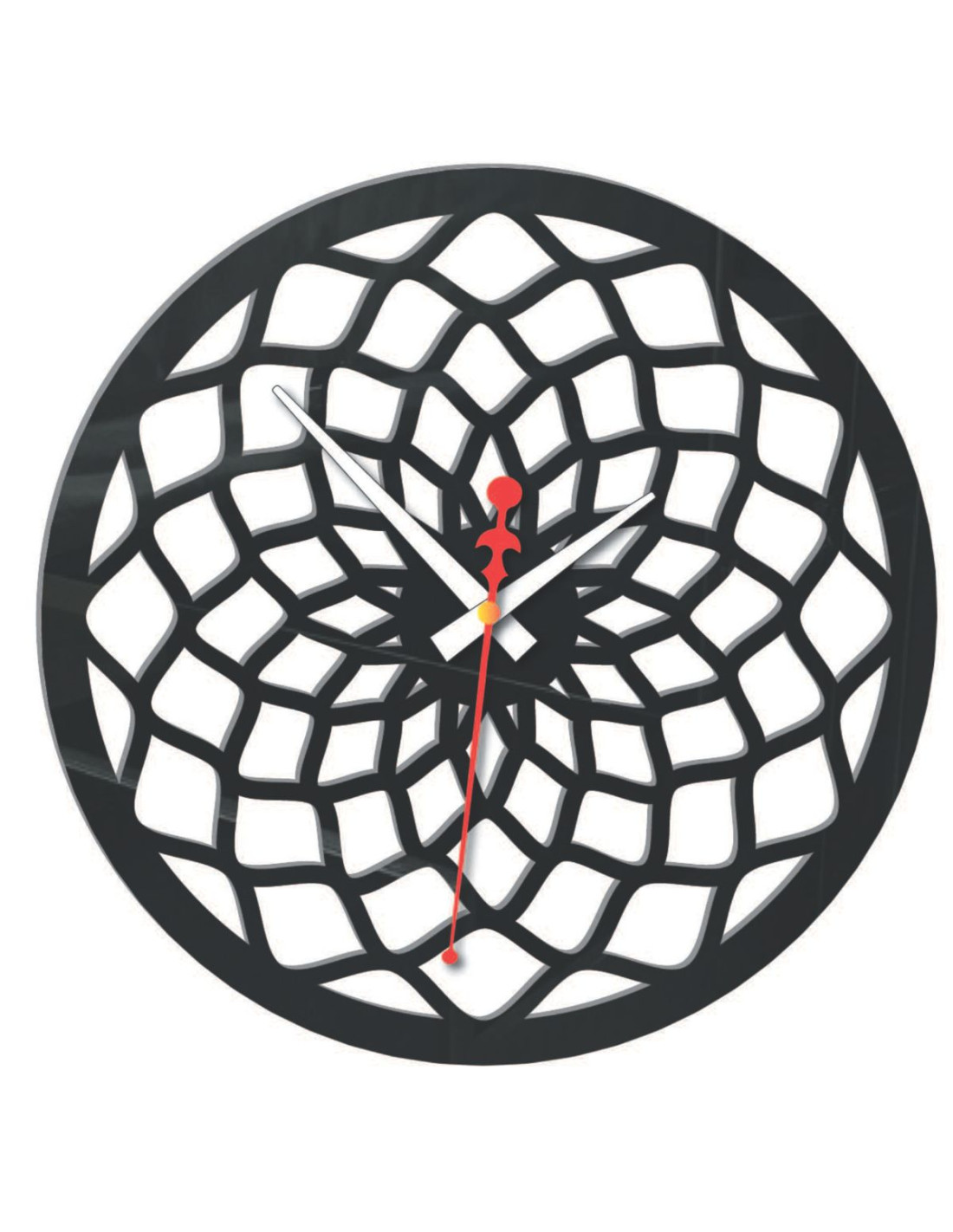 Az óra jellegzetes mintázattal rendelkezik, amely absztrakt rácsra vagy formázott sugarakra hasonlít, így feltűnő díszítőelemmé válik bármilyen belső térben.