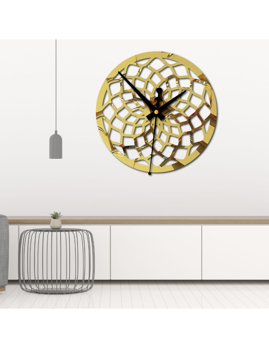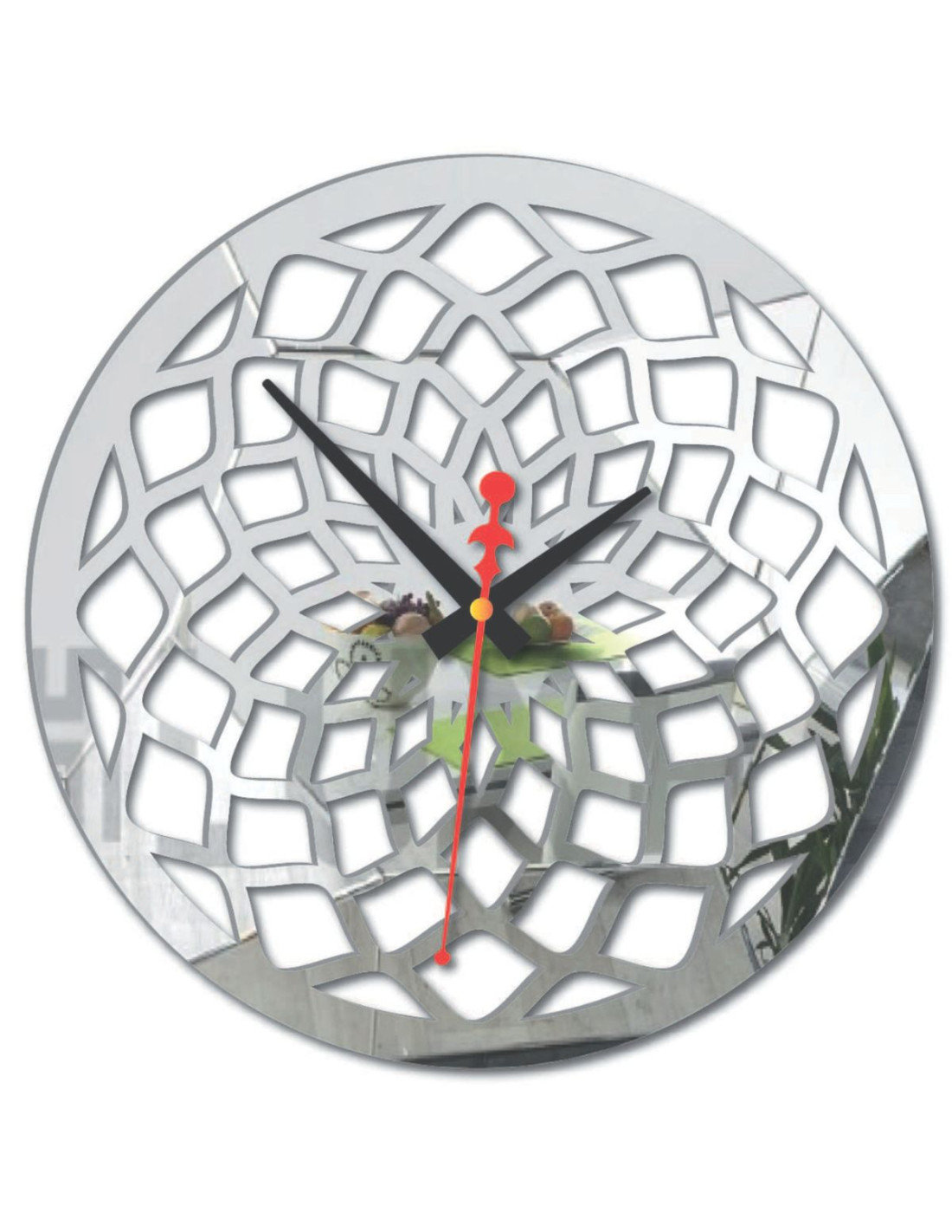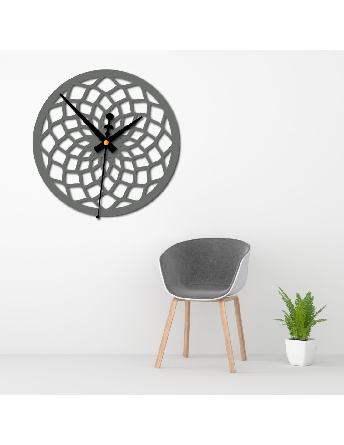Az óra jellegzetes mintázattal rendelkezik, amely absztrakt rácsra vagy formázott sugarakra hasonlít, így feltűnő díszítőelemmé válik bármilyen belső térben.