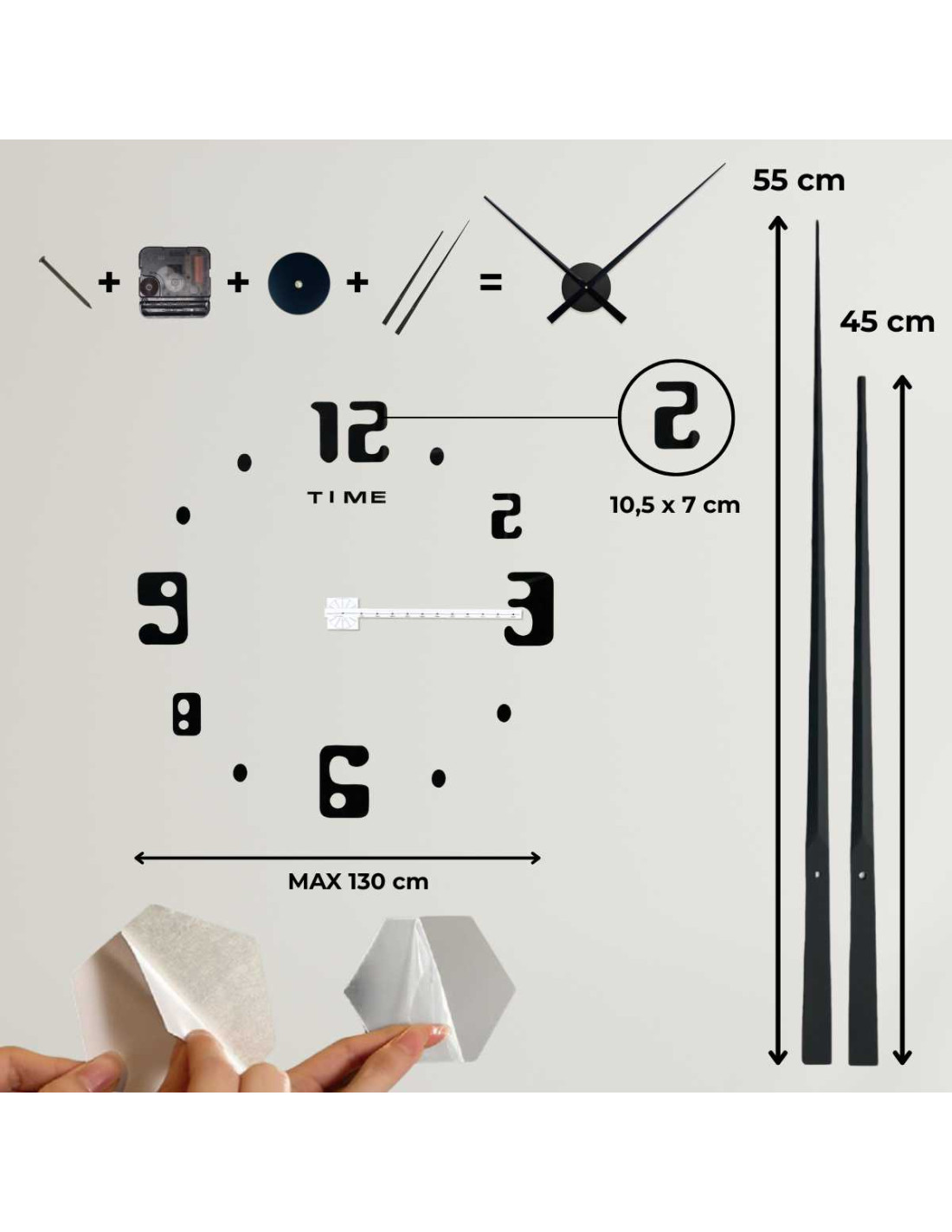 Ez a modern óra az elegáns minimalista dizájnt, a hárommutatós szerkezetet csendes és sima működéssel , valamint fúrás nélküli egyszerű összeszereléssel ötvözi.