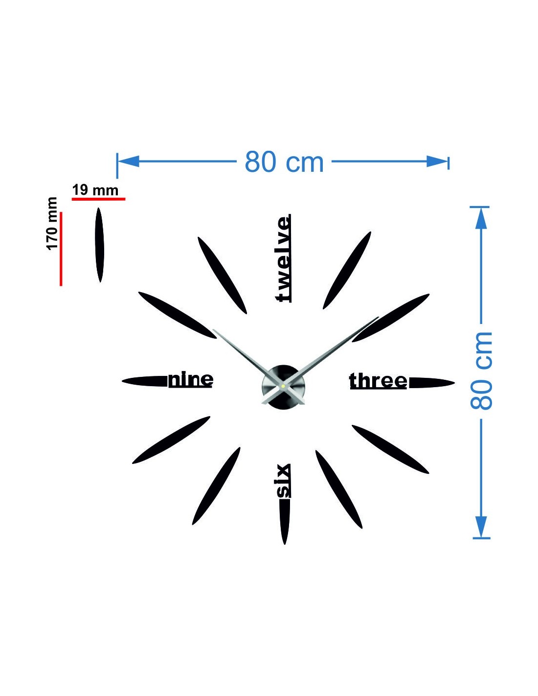 * Az óraszerkezet méretei: 100 x 100 mm. A mutatók hossza: 30 - 40 cm.